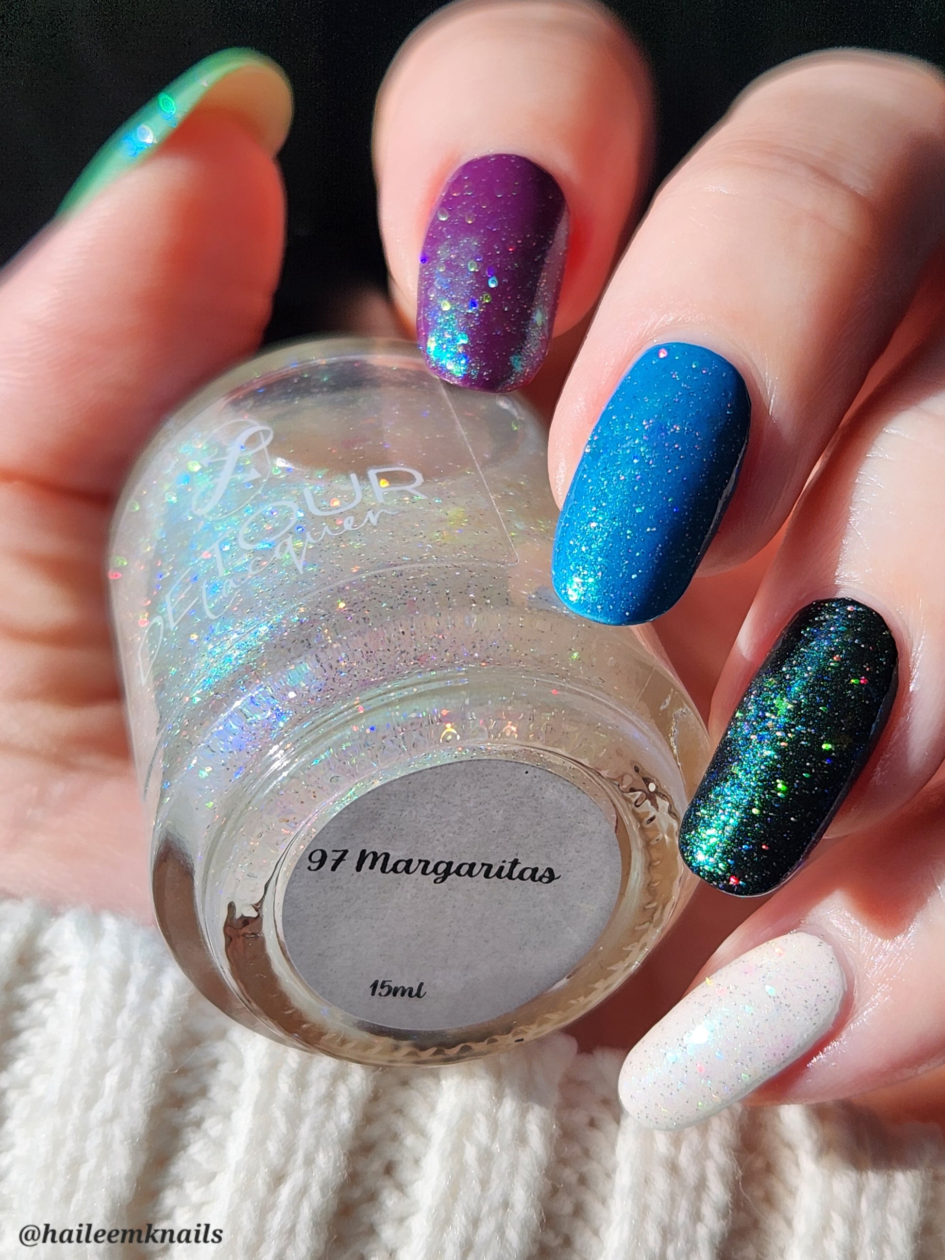 Grandma loved a good margarita! Refresh your look with 97 Margaritas, a glowy green shimmer with holo flakes, and lime/copper/blue shifting flakes. Wear alone for an ethereal shimmer or mix up something new by layering over your favorite shades.