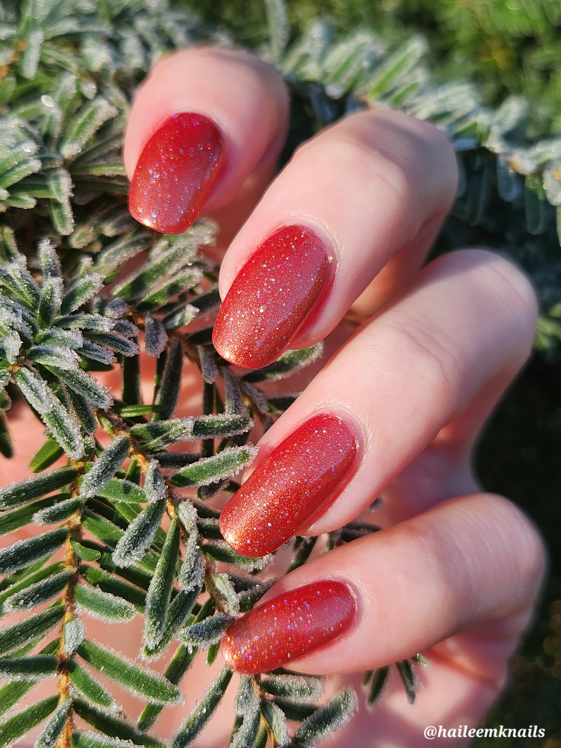 Shown in 2 coats with a top coat on a clear swatch wheel