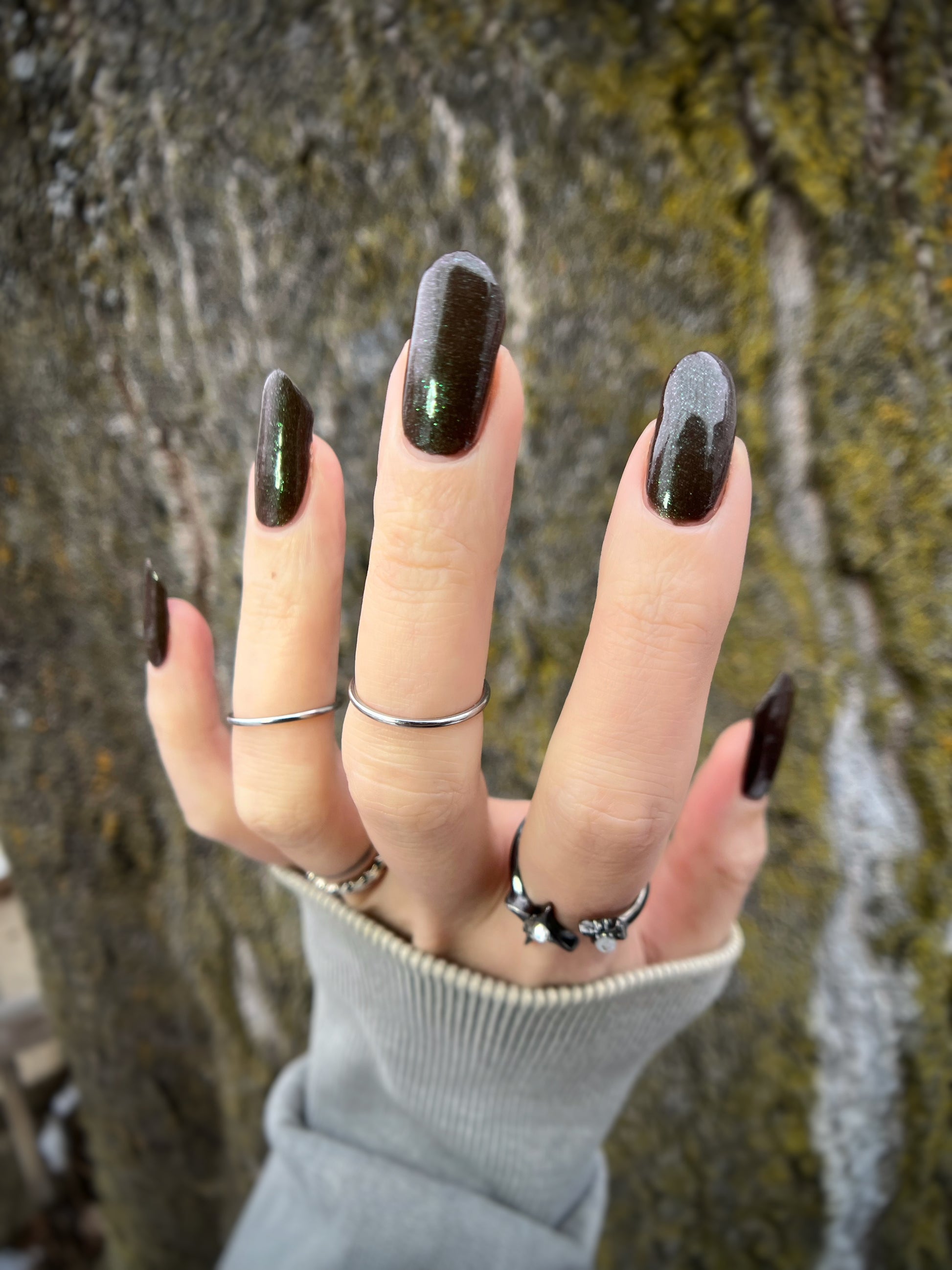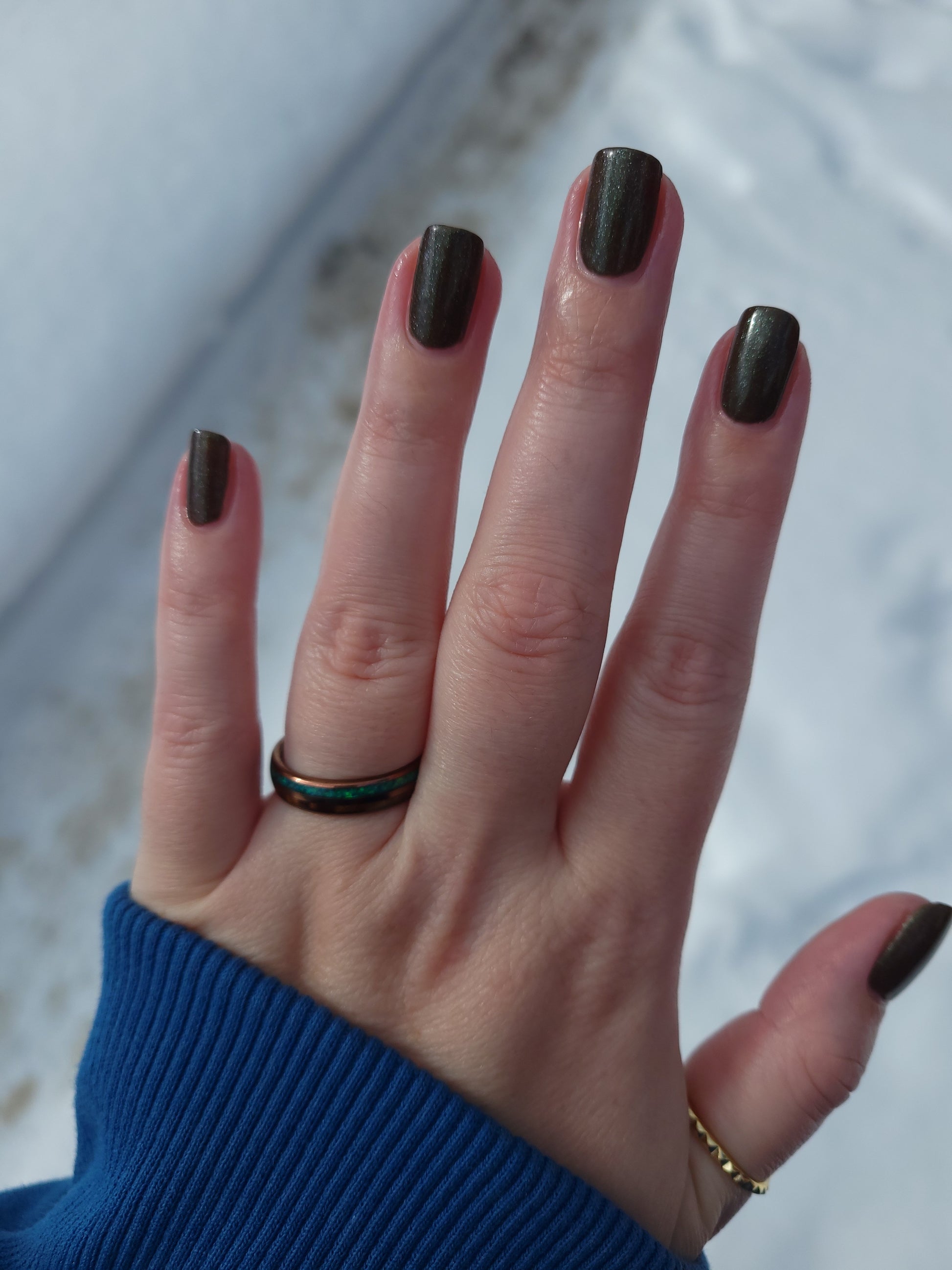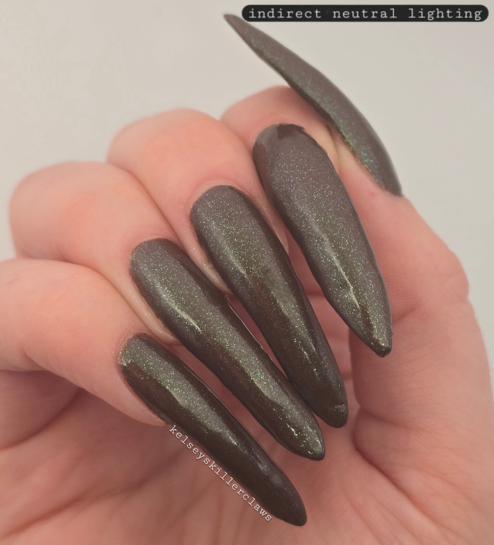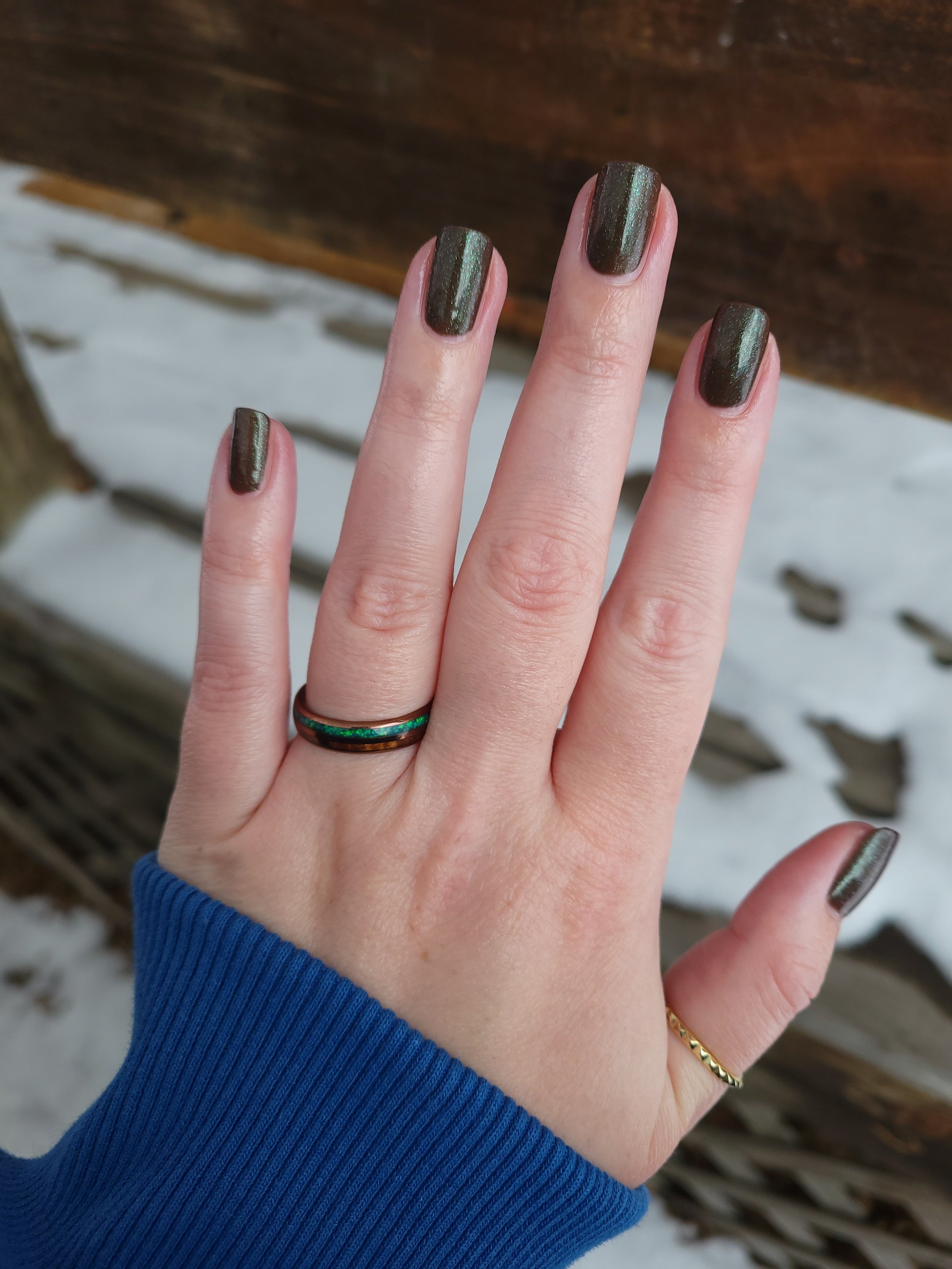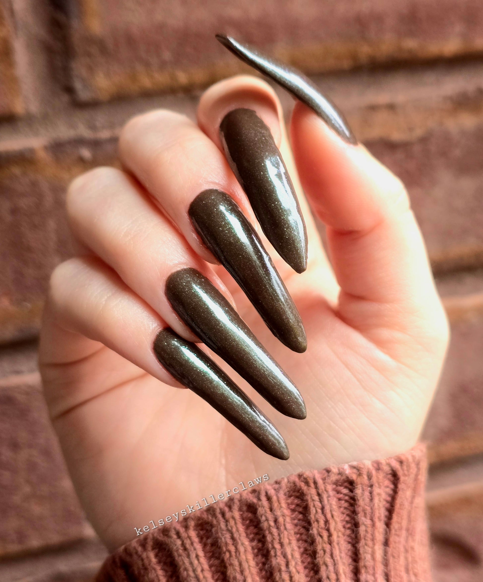 Chocolate Driftwood is a delectable chocolate brown polish with green shimmer and holo. The rich, earthy brown and soft suggestions of seaweed will take you away to a day at the beach.