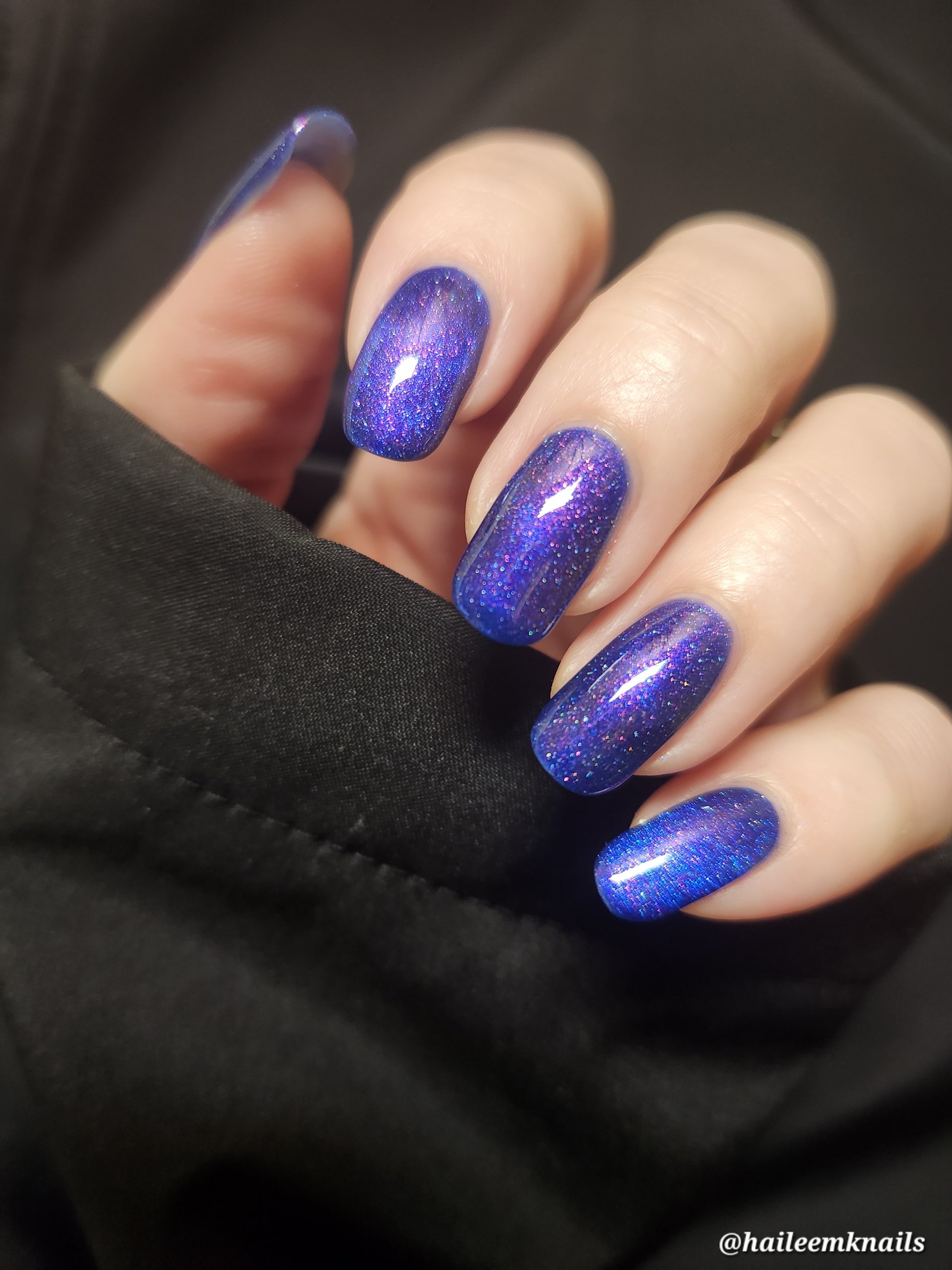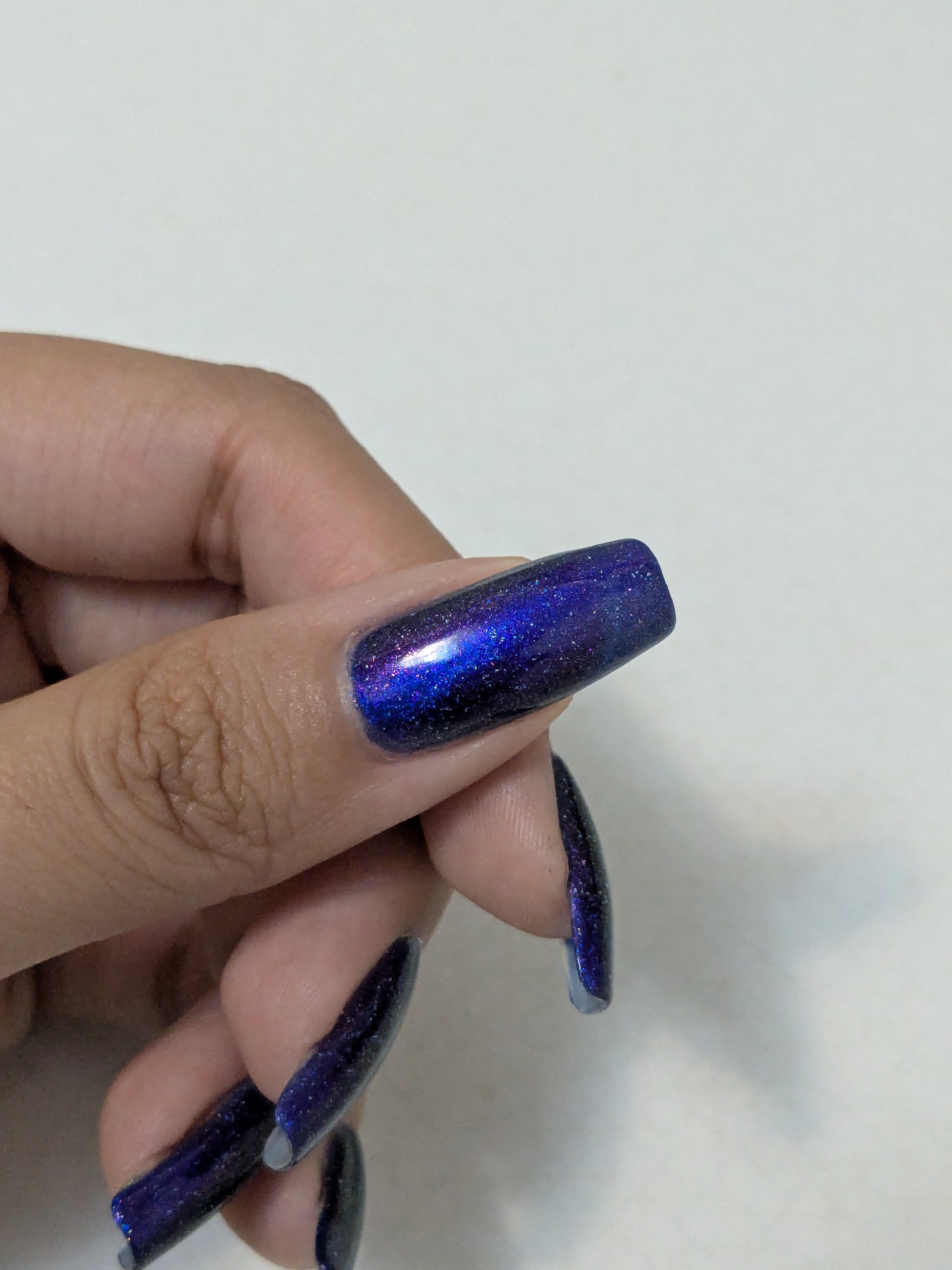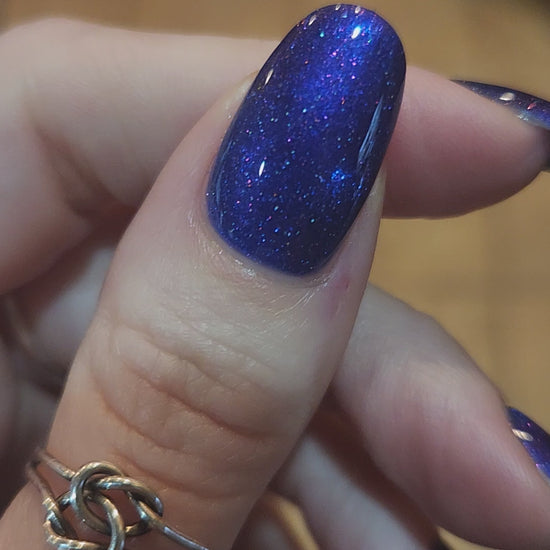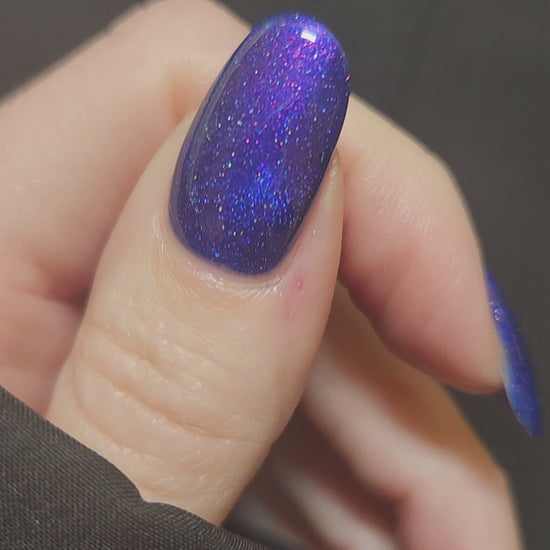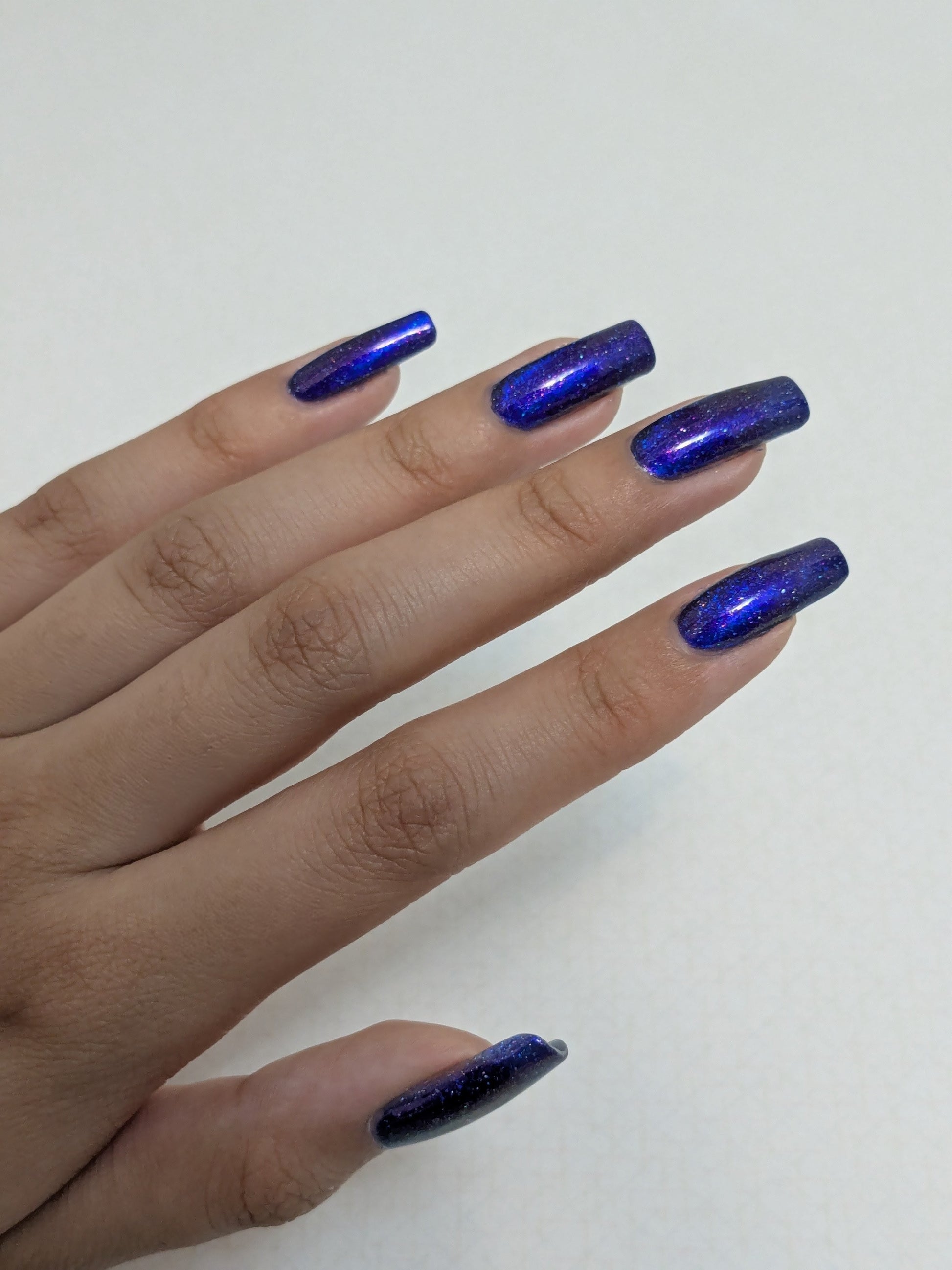 A vibrant blue base with purple shimmer, holo and a blue magnetic effect