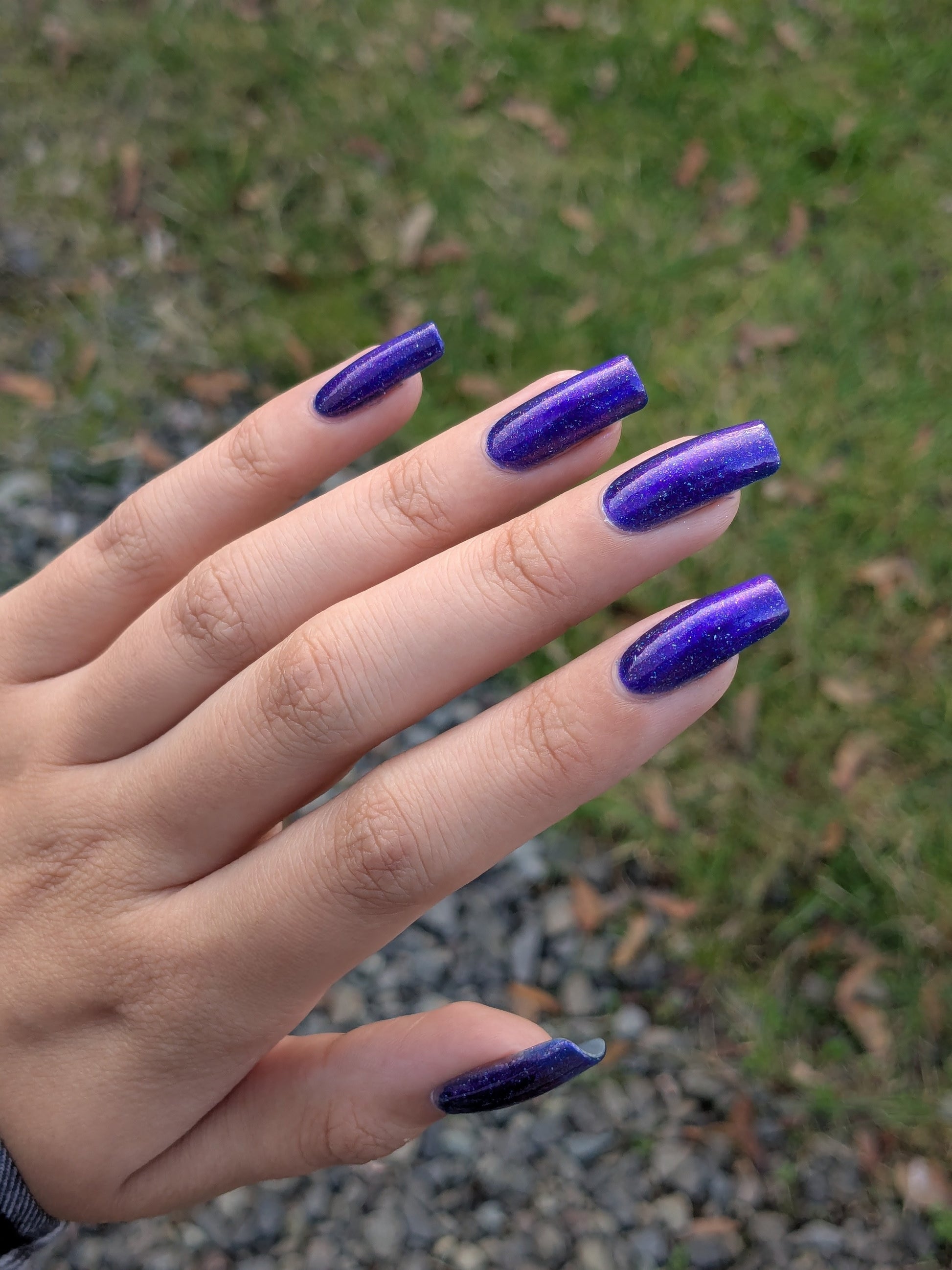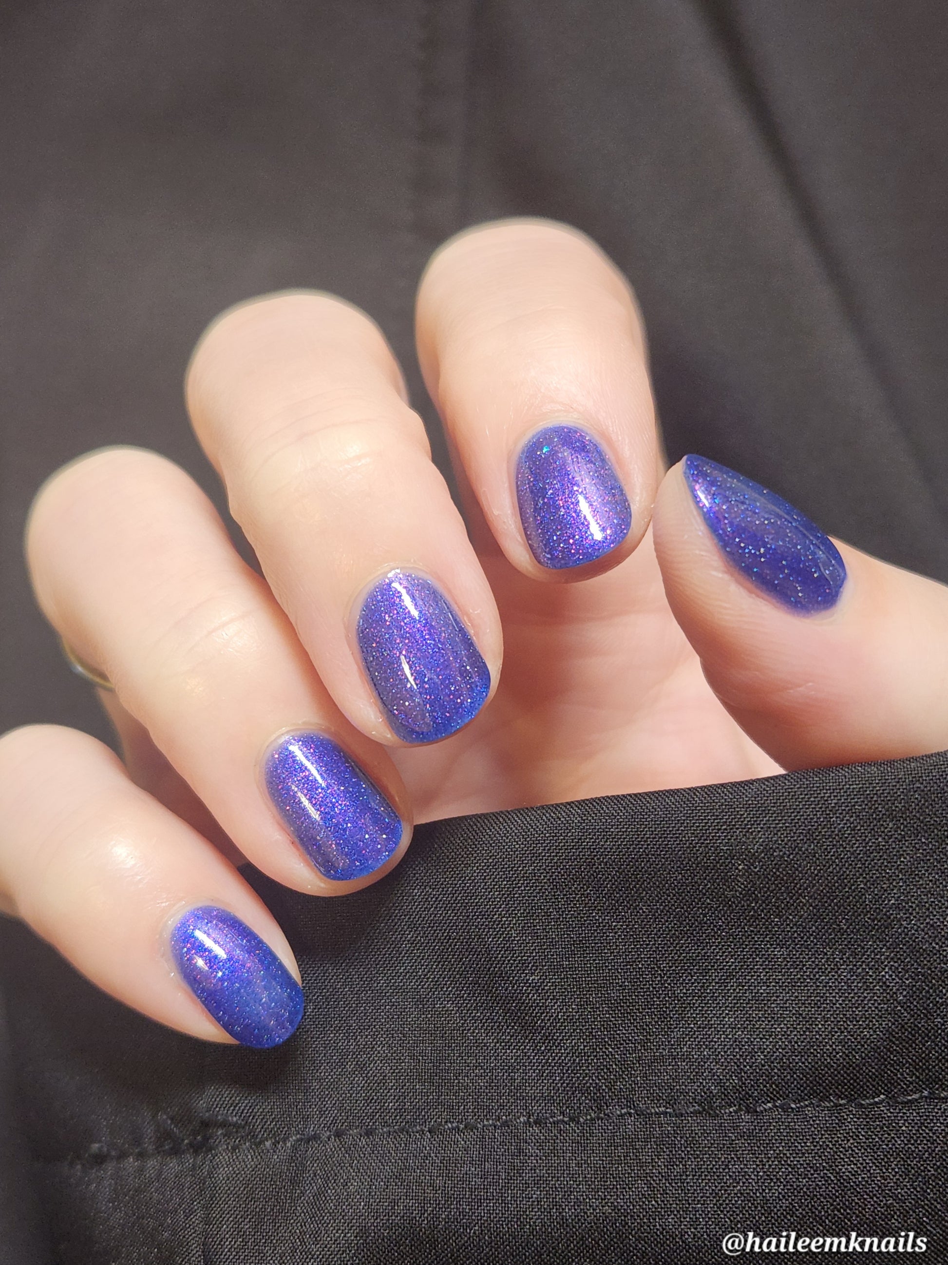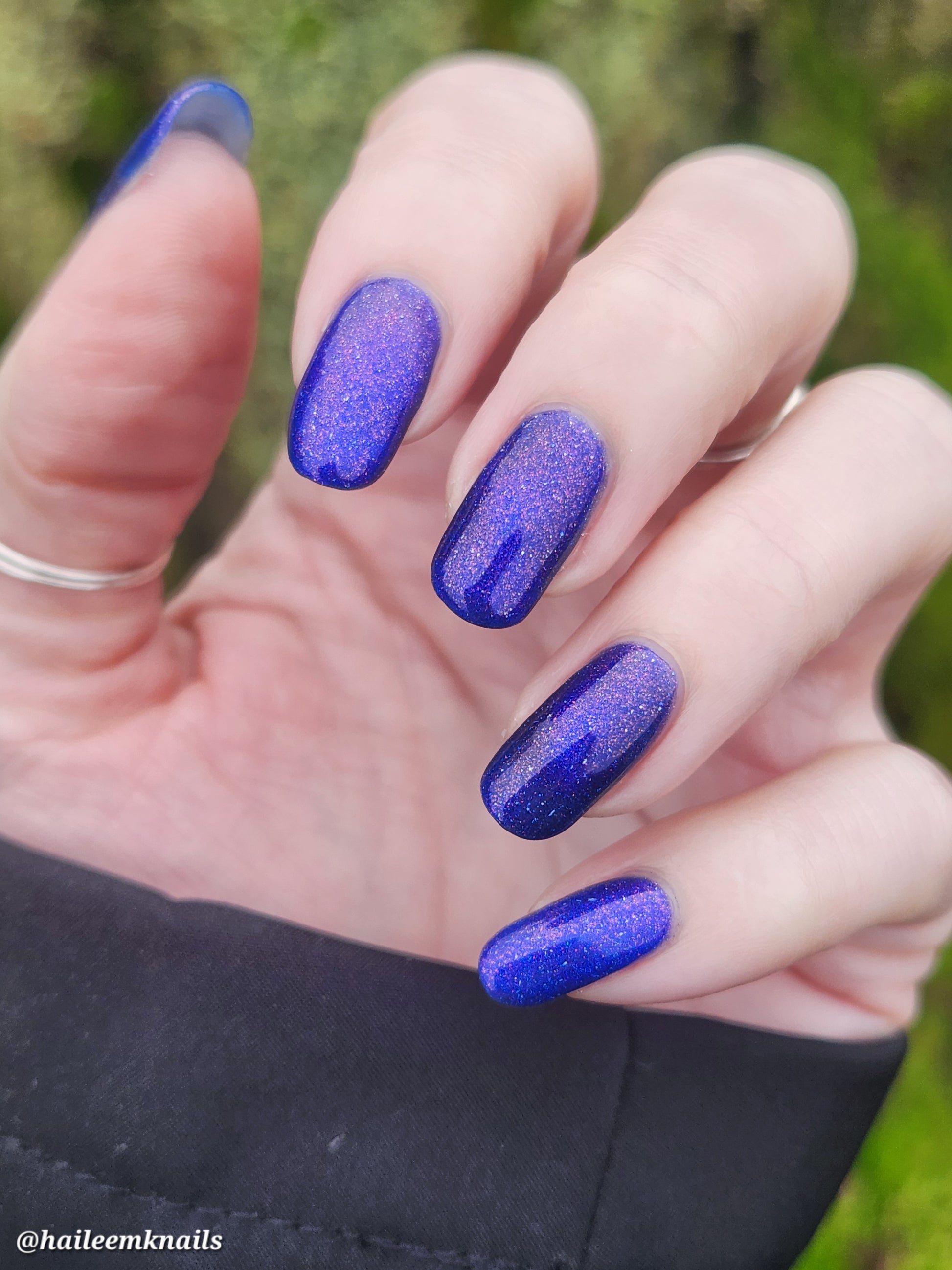 A vibrant blue base with purple shimmer, holo and a blue magnetic effect