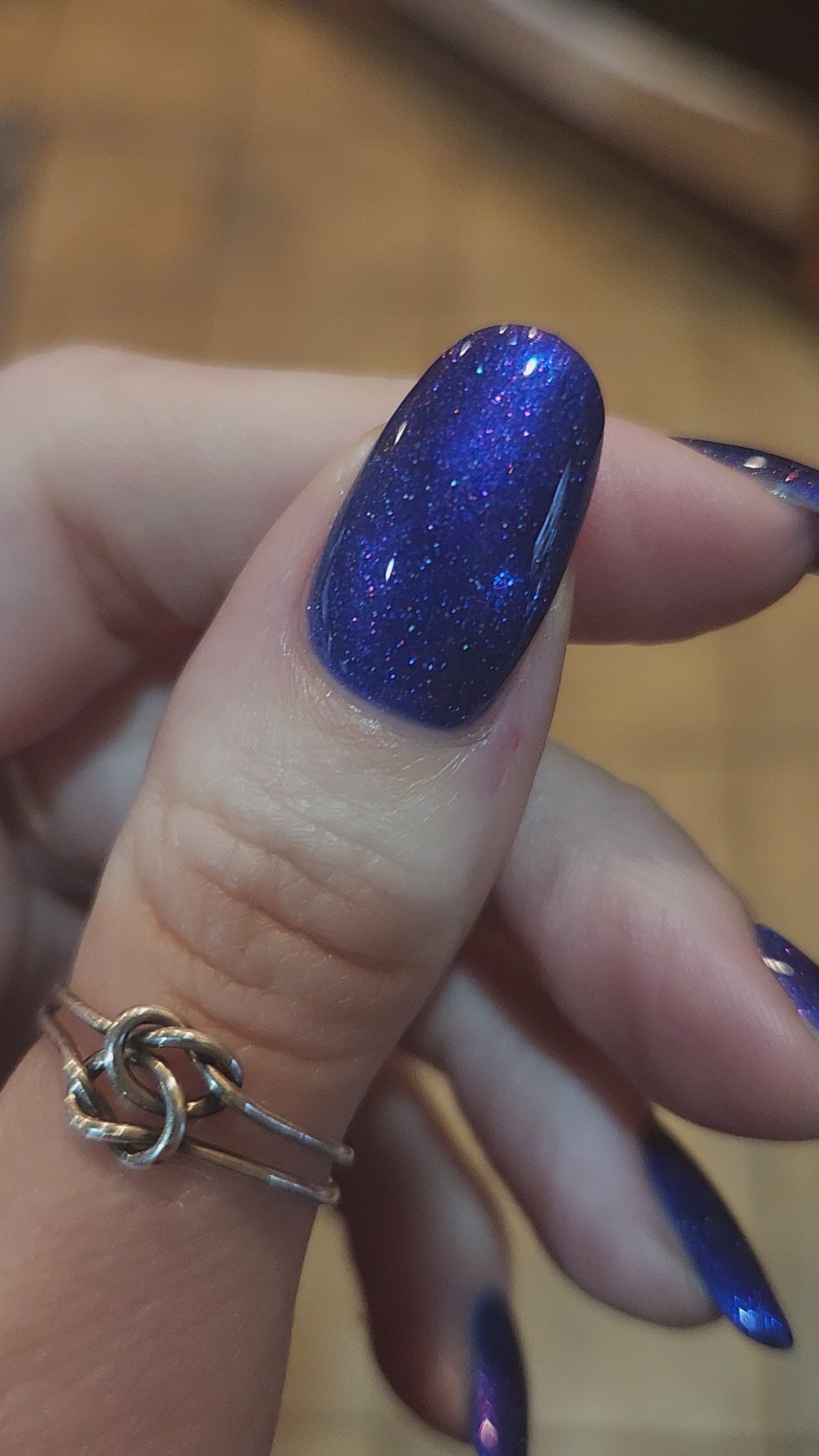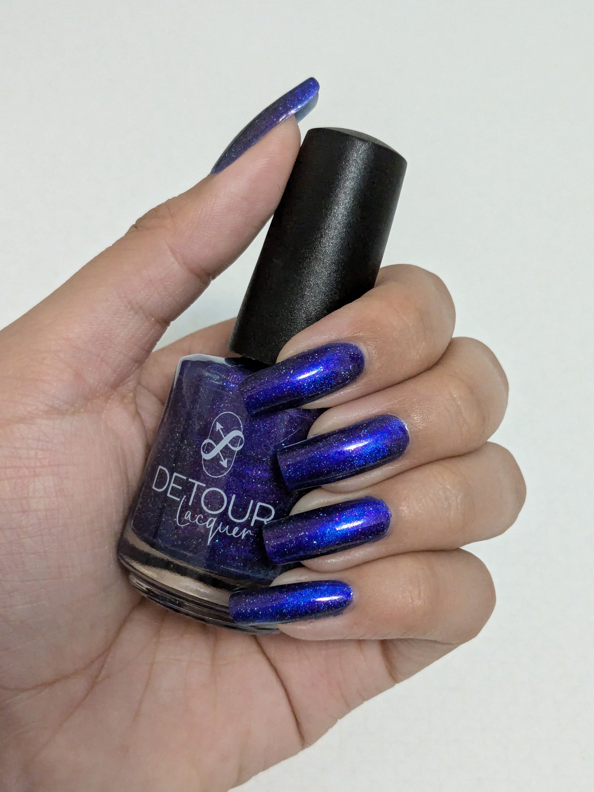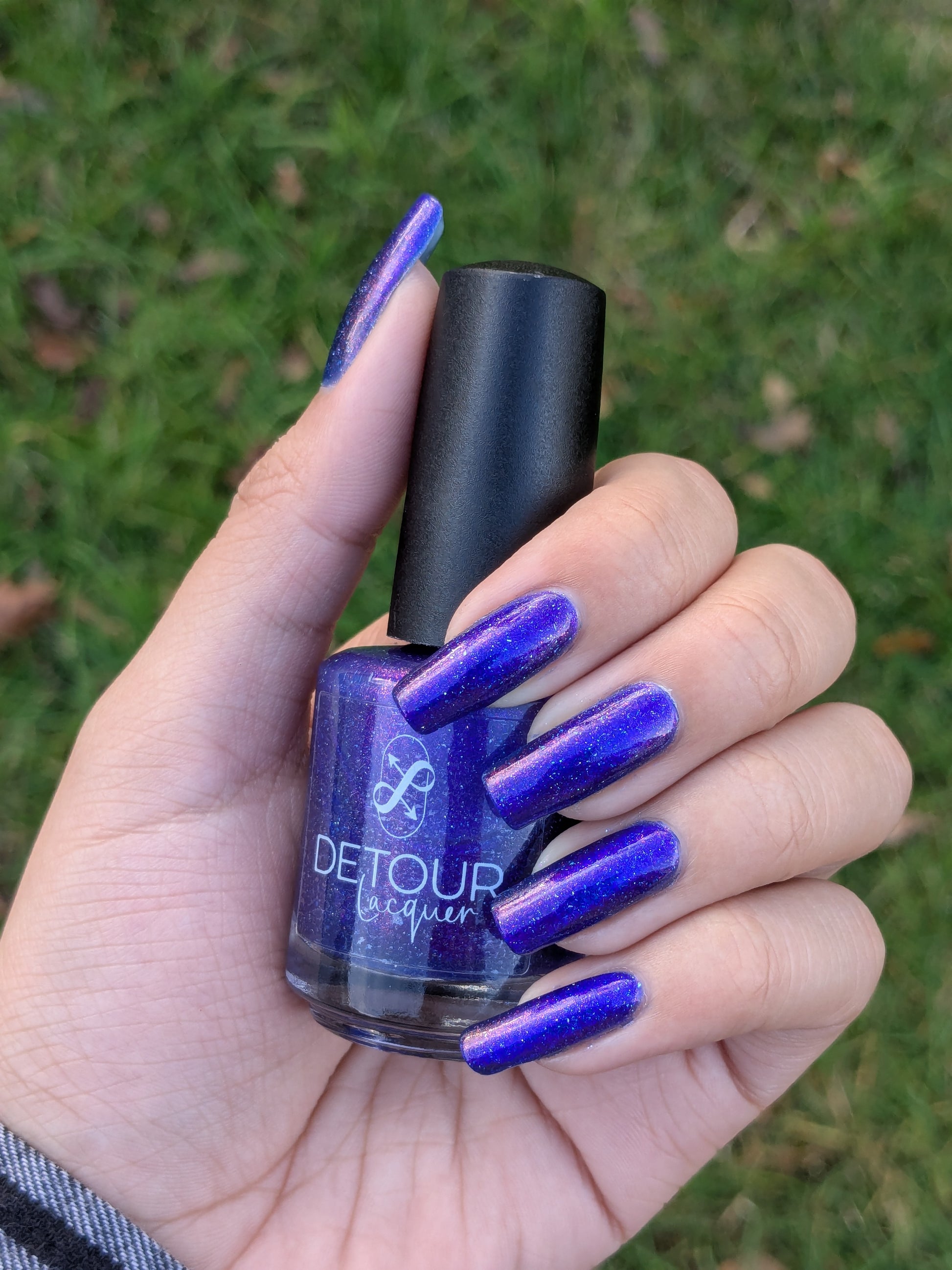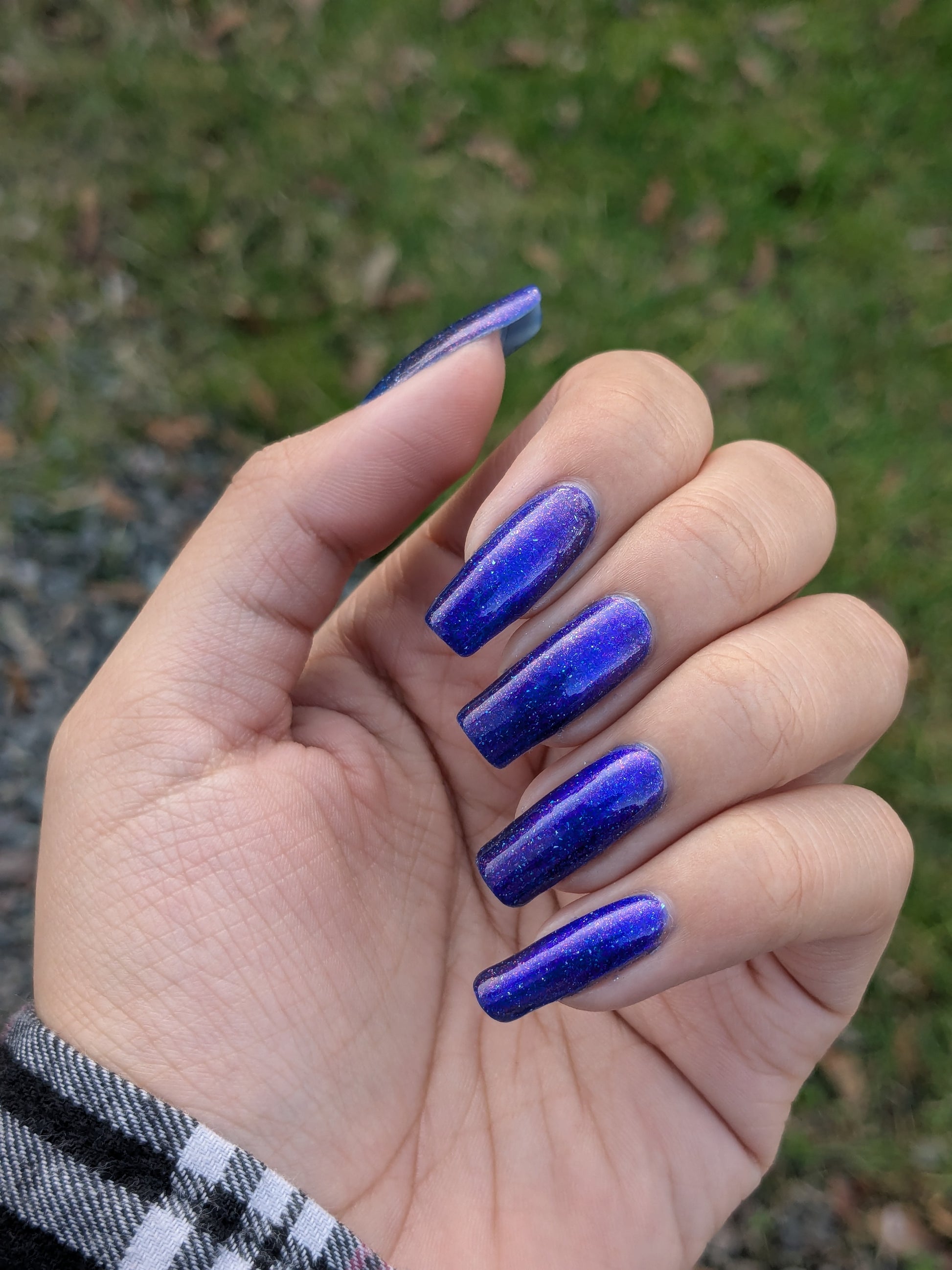 A vibrant blue base with purple shimmer, holo and a blue magnetic effect