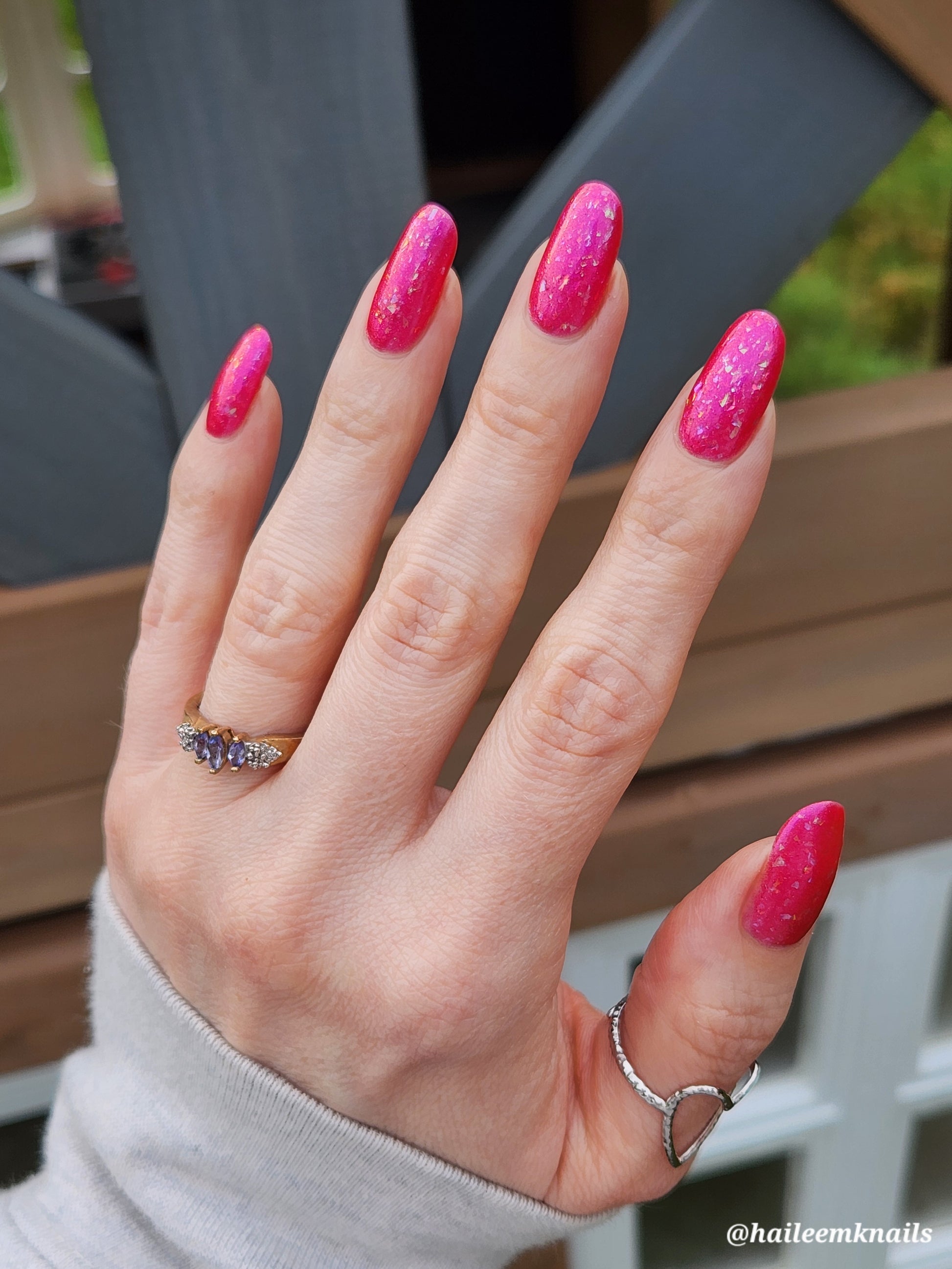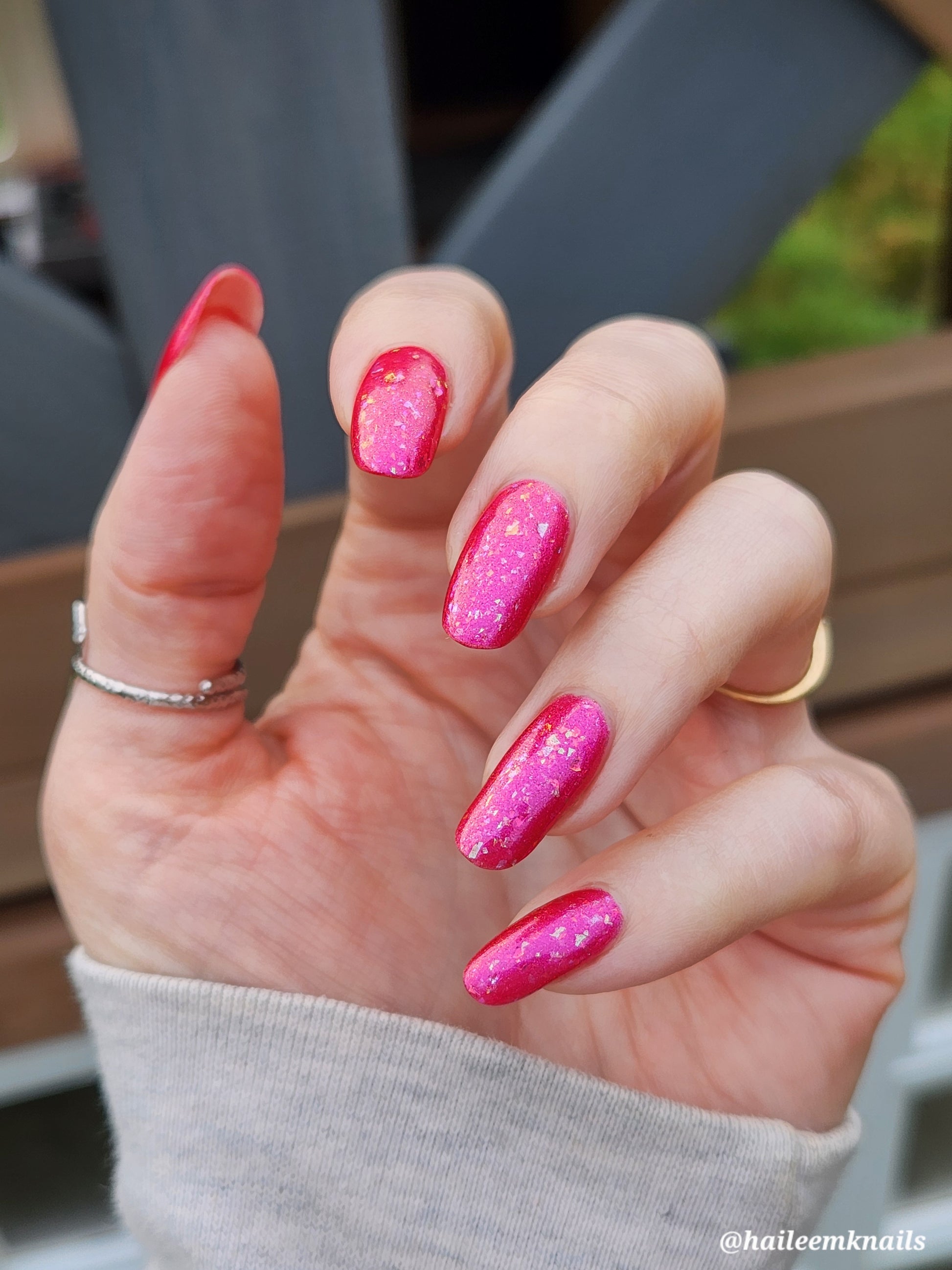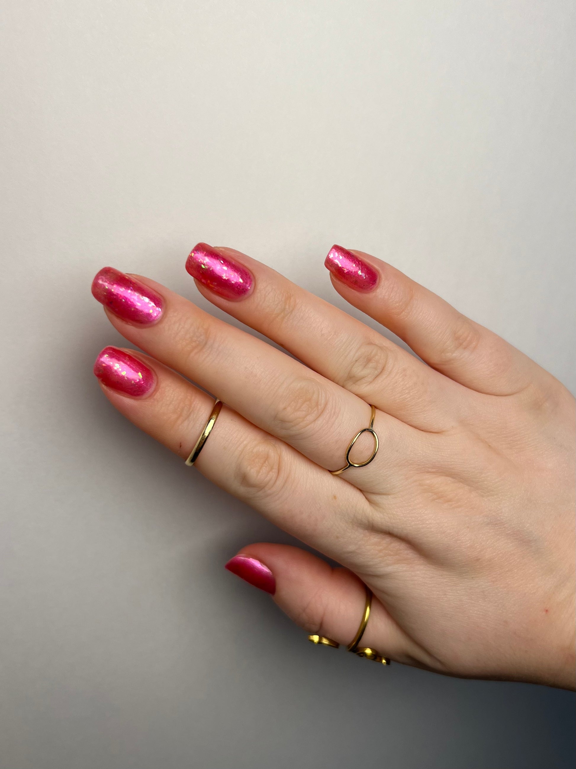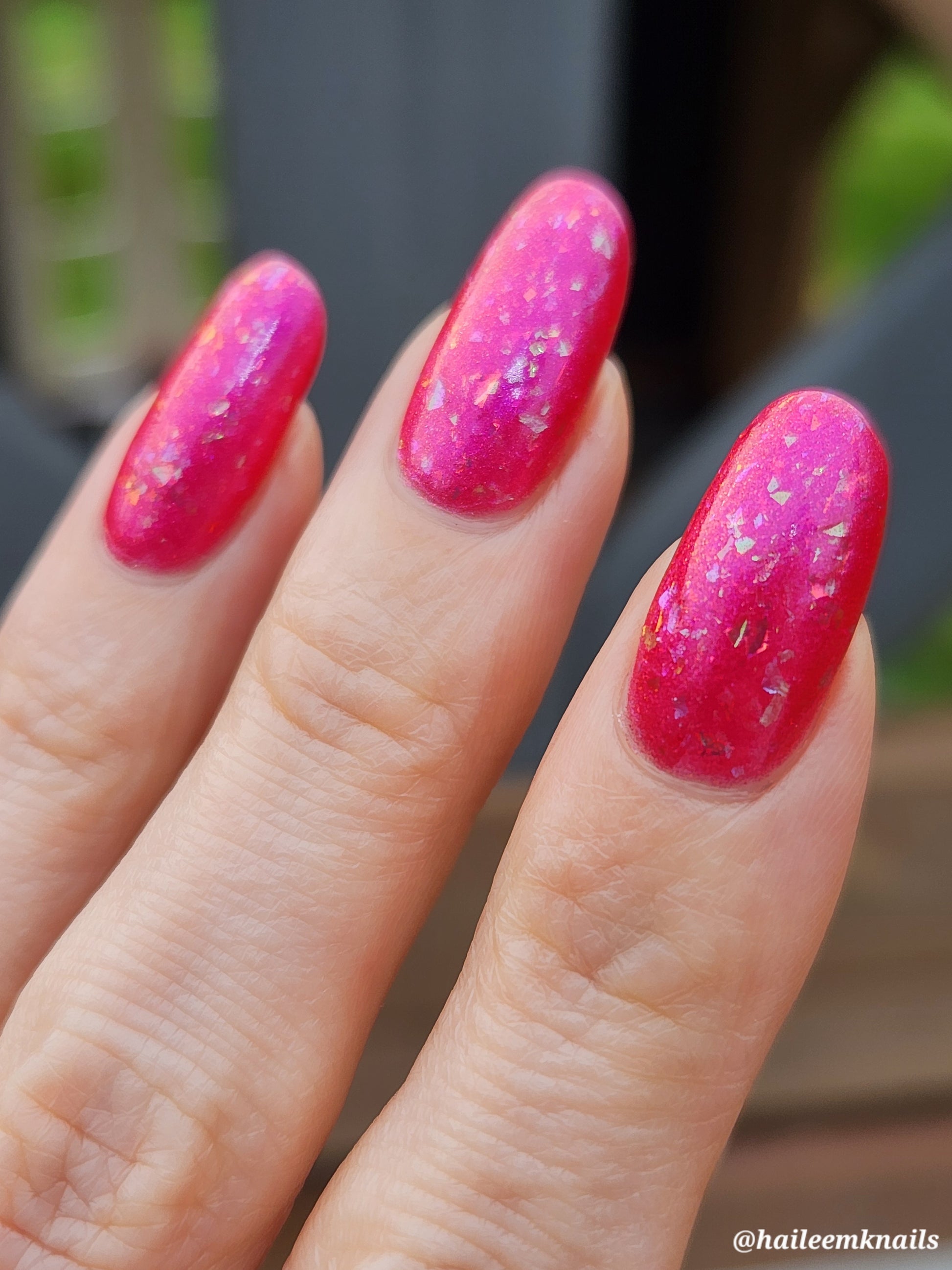 Love Shack is a sassy hot pink polish with dazzling flakes. Flirty and vivacious, this one's sure to turn heads!