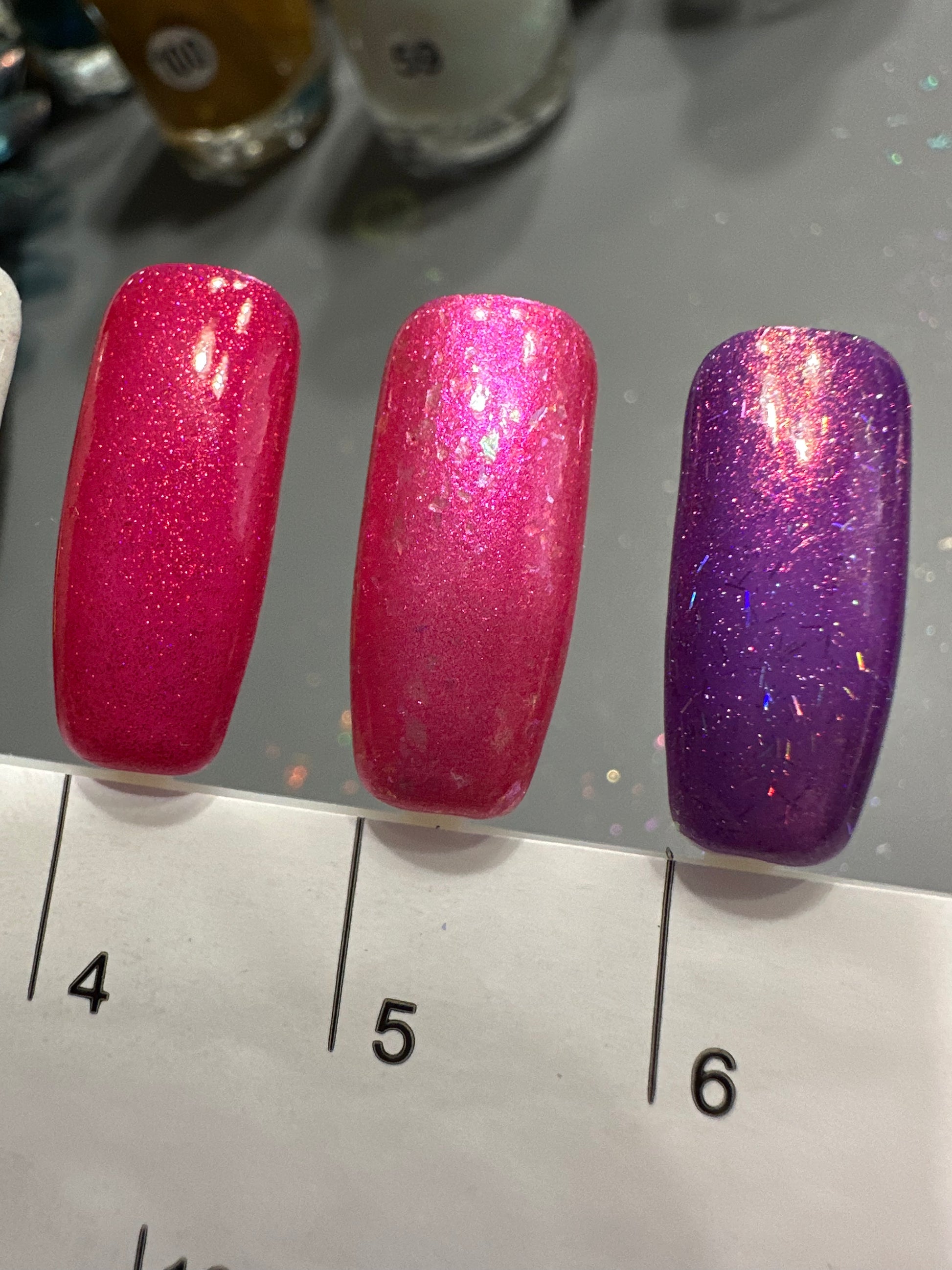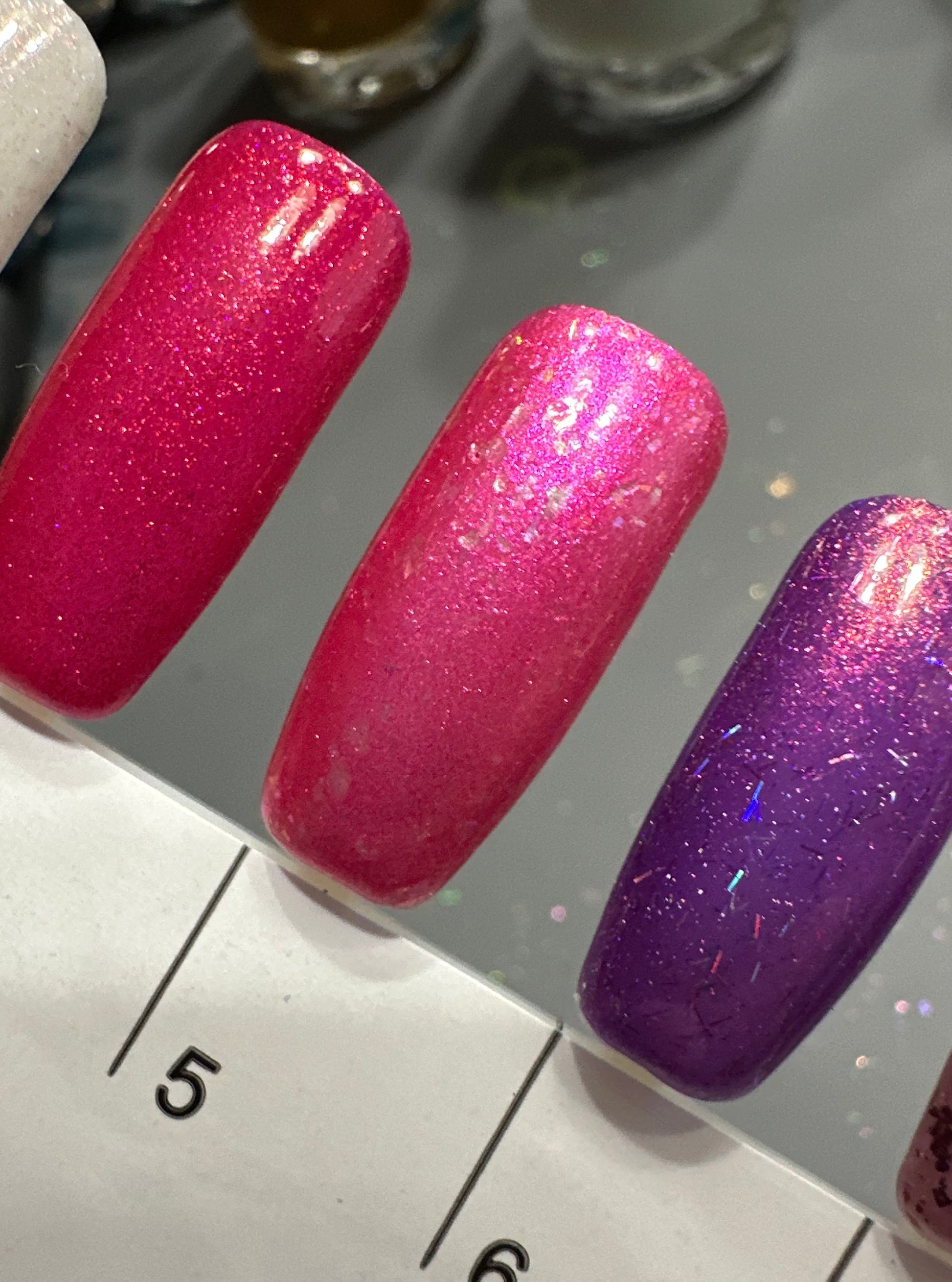 note: some swatches may be shown with additional products used (examples: base coat, top coat, etc.).