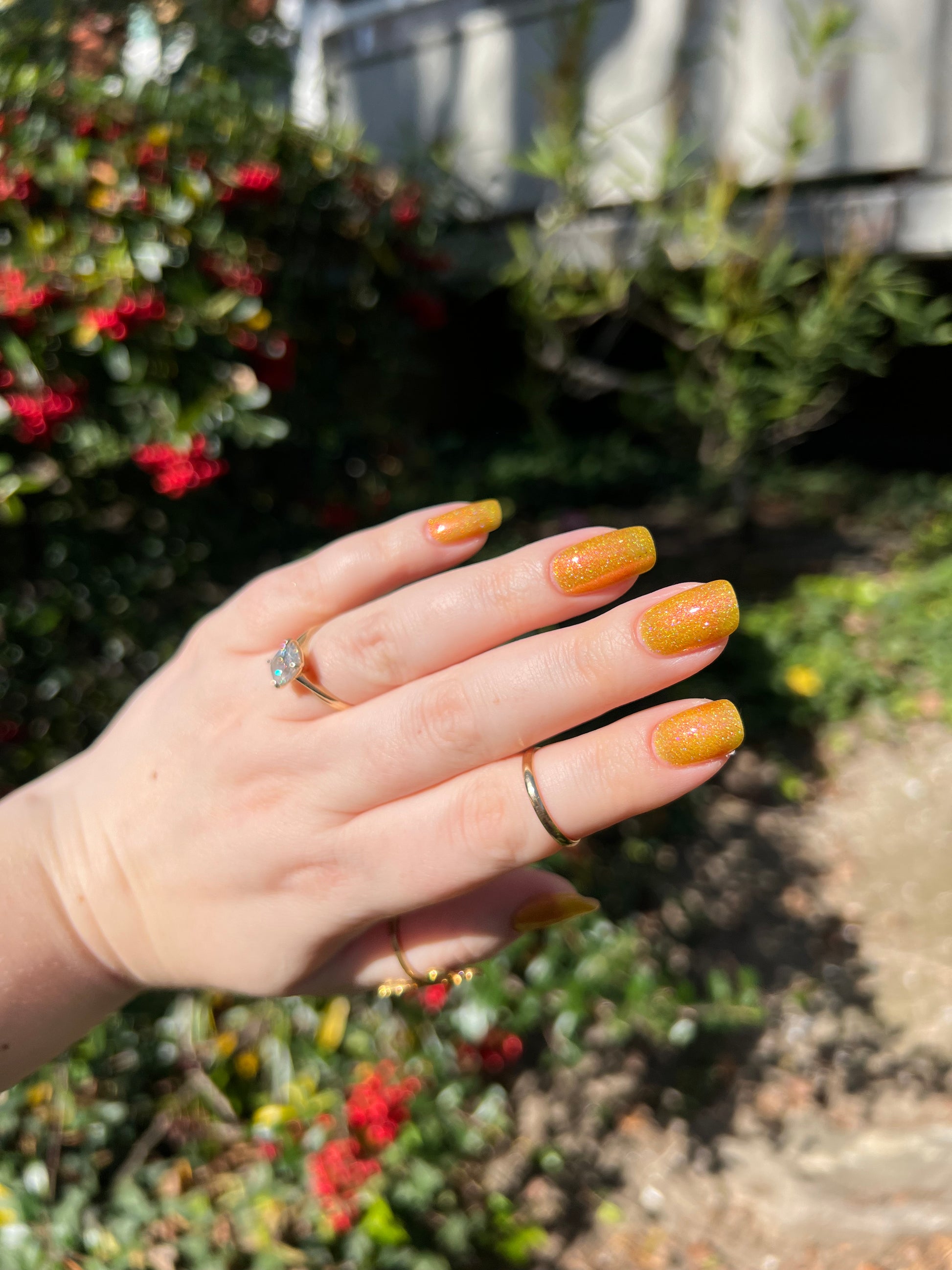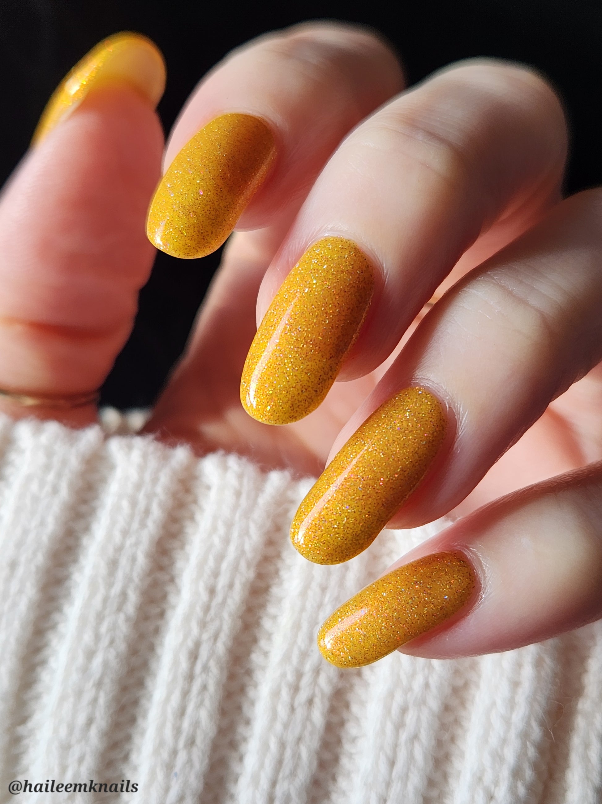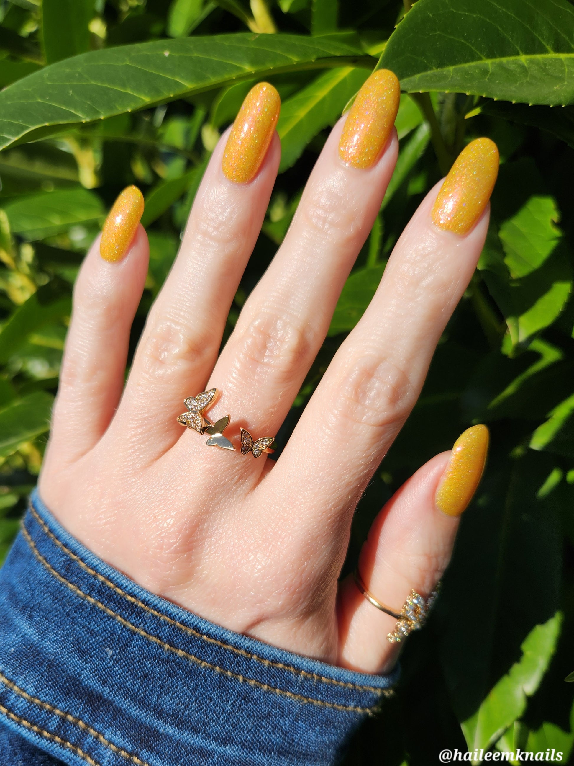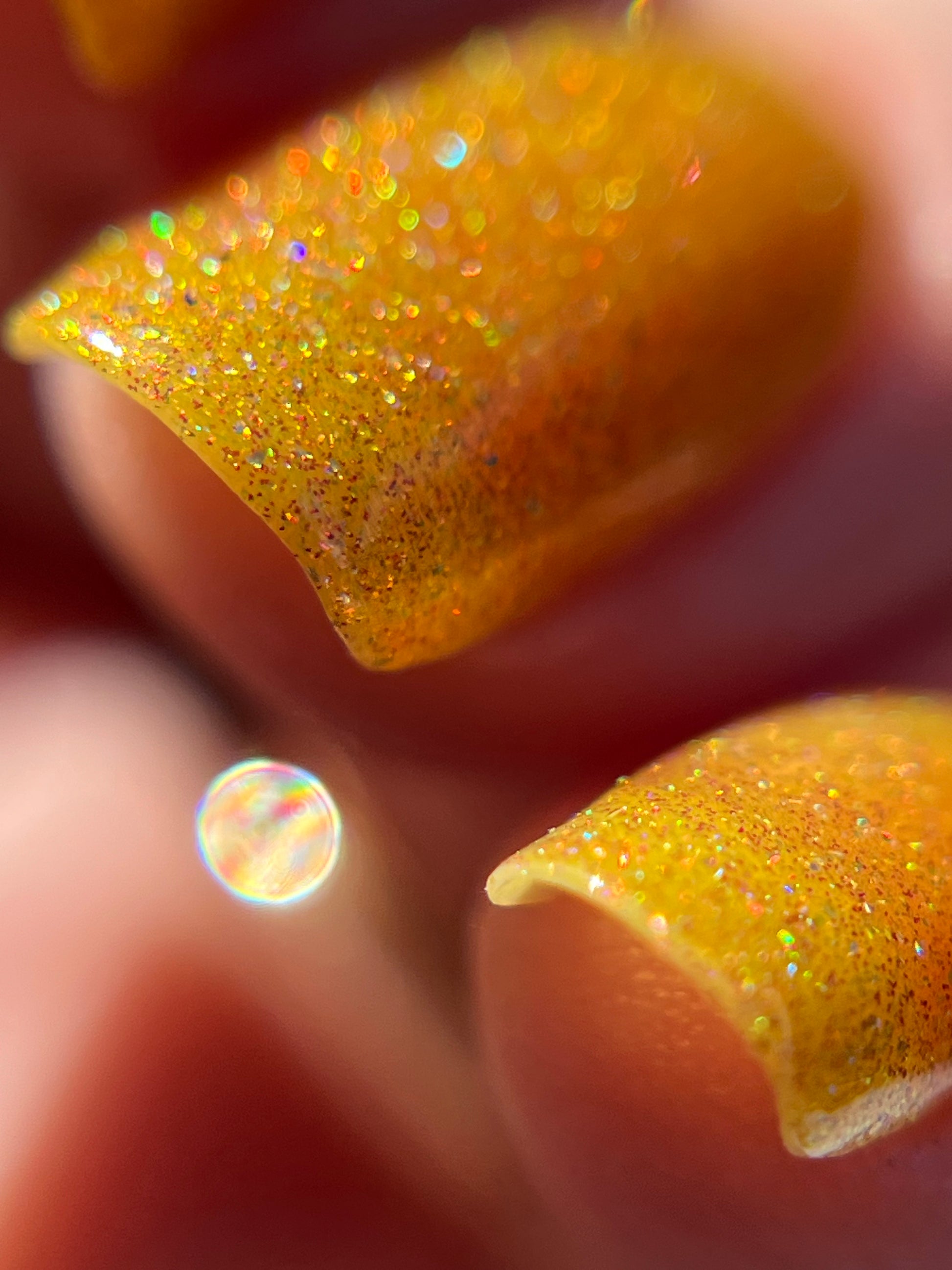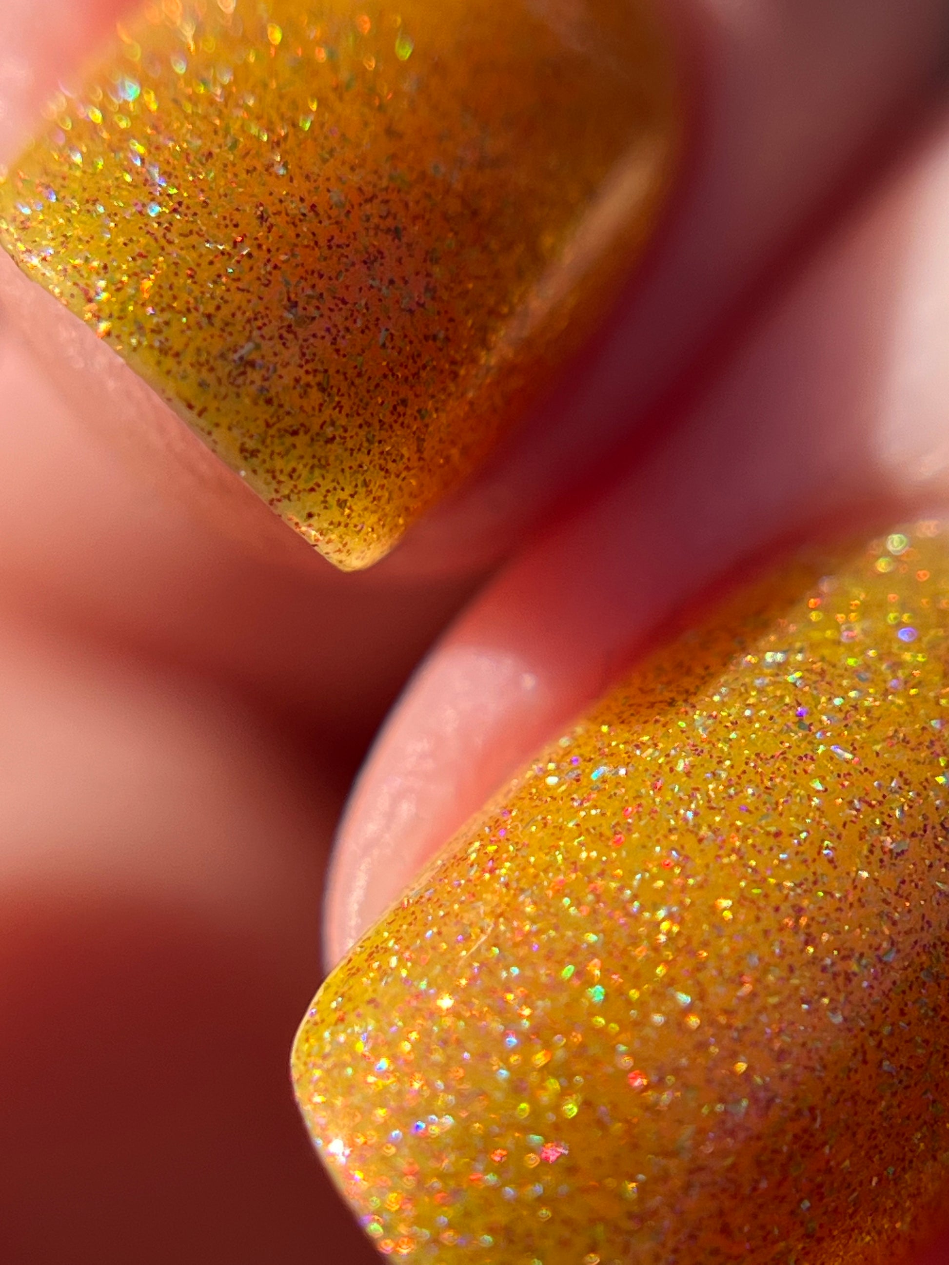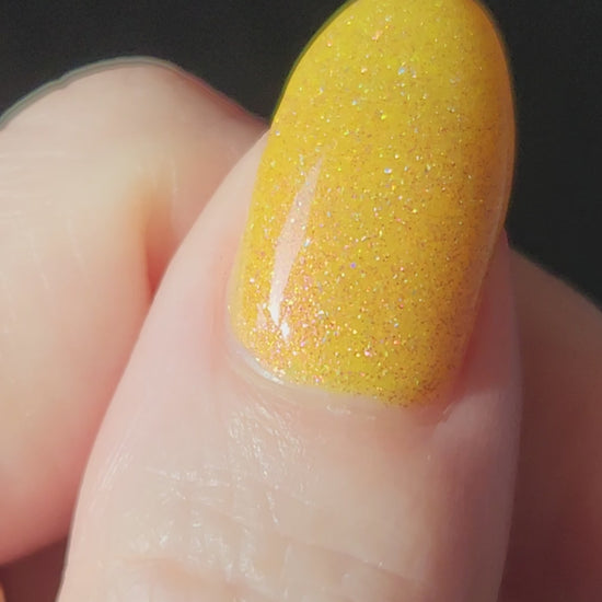 Rosy Maple Glow is an enchanting yellow packed with rose holo glitters and an intense pink glow. Much like the Rosy Maple Moth of eastern North America, this polish gives cute and playful vibes. It's hard not to feel cheerful wearing this beauty.