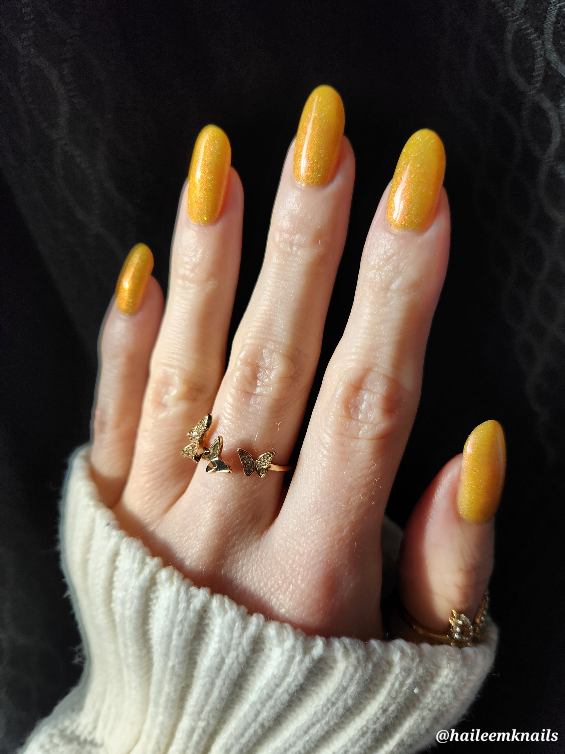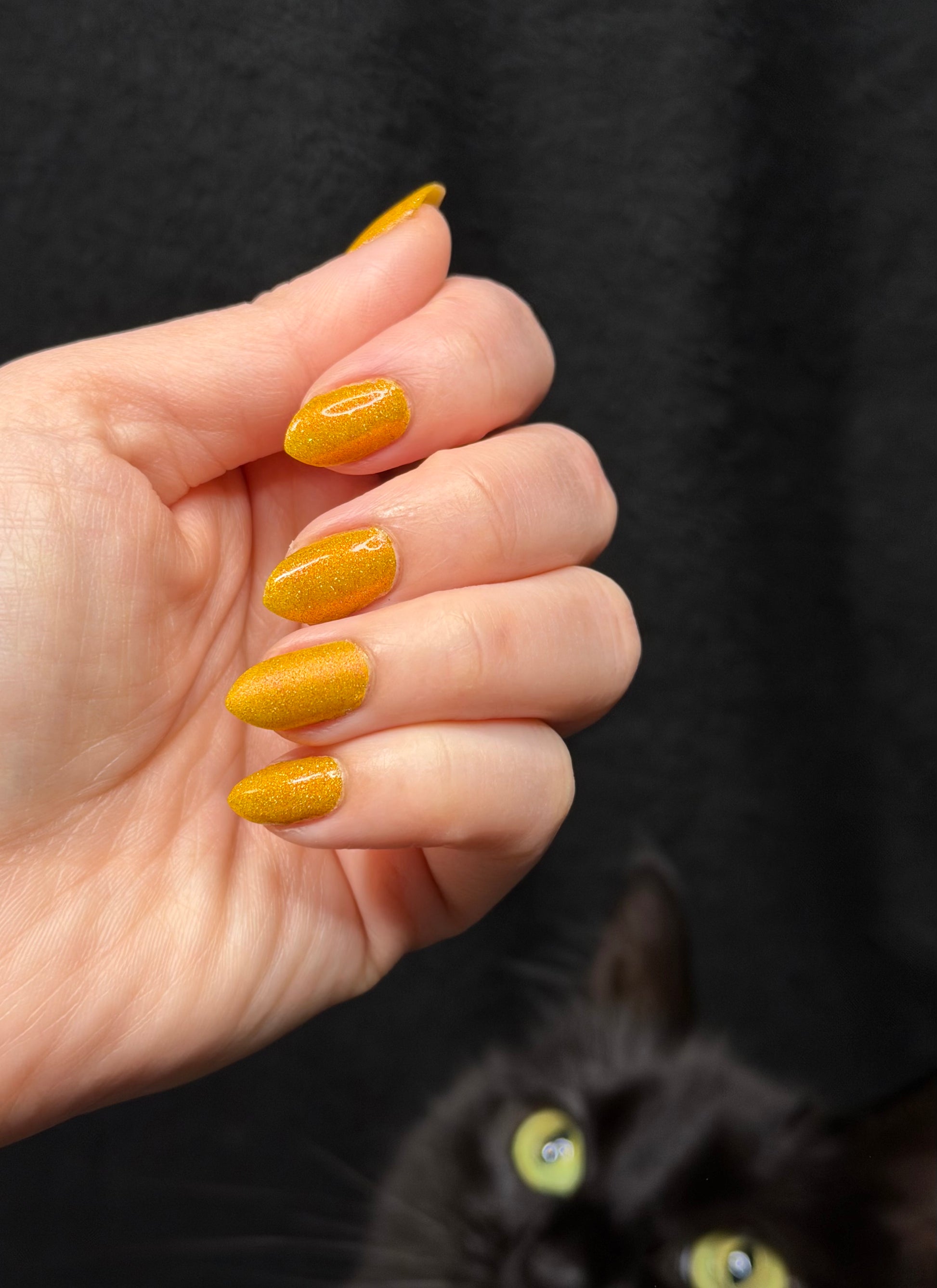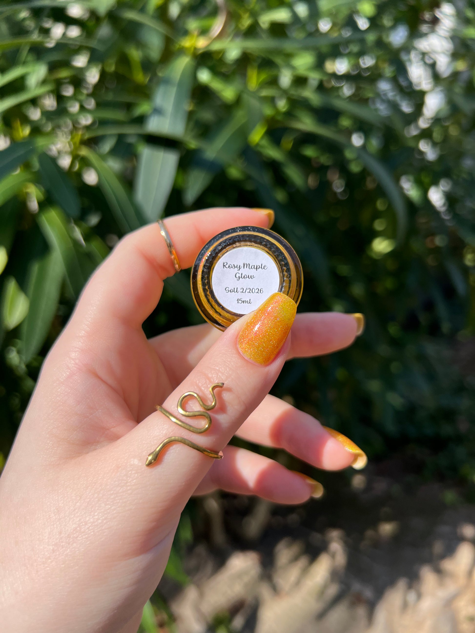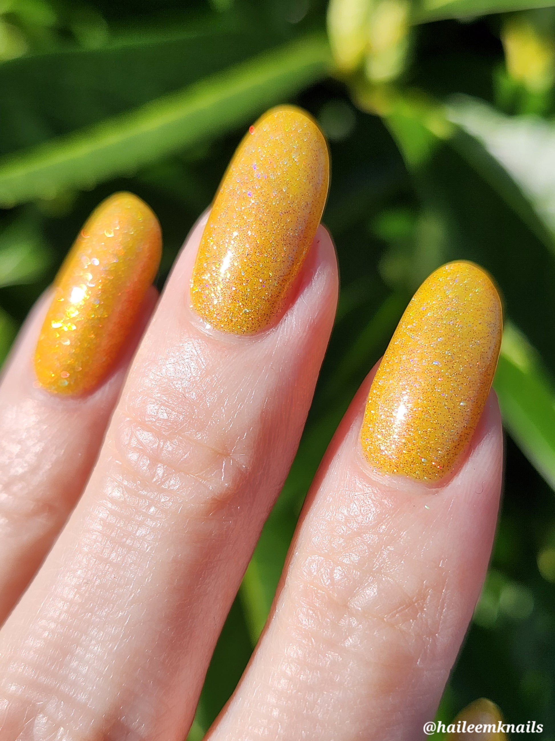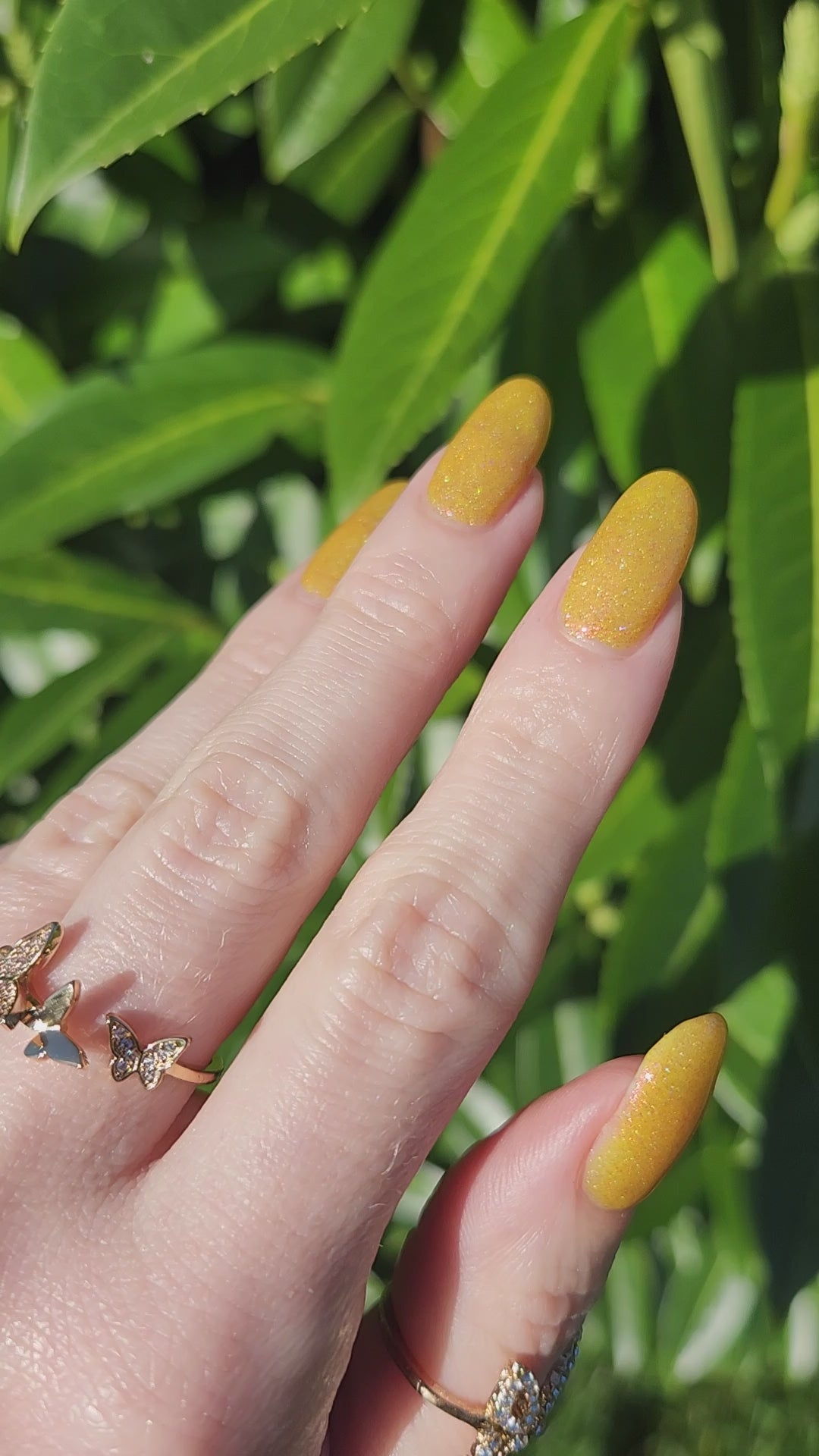 Rosy Maple Glow is an enchanting yellow packed with rose holo glitters and an intense pink glow. Much like the Rosy Maple Moth of eastern North America, this polish gives cute and playful vibes. It's hard not to feel cheerful wearing this beauty.