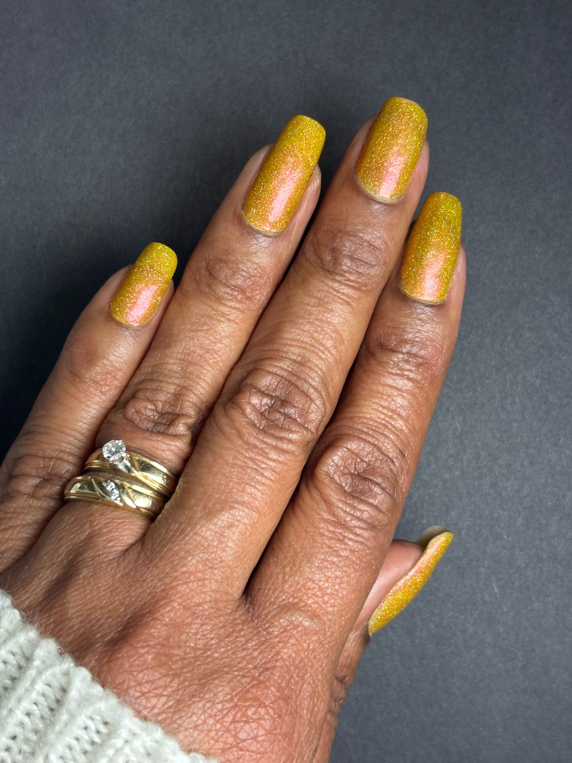 Our swatches are meant to give a general feel for each shade. We do our best to show accurate swatches on a range of skin tones, but screens can display colors differently. Since our polishes are handmade in small batches, small variations between batches are normal. Because of this, the polish you receive may look a bit different on you than it does in online swatches.