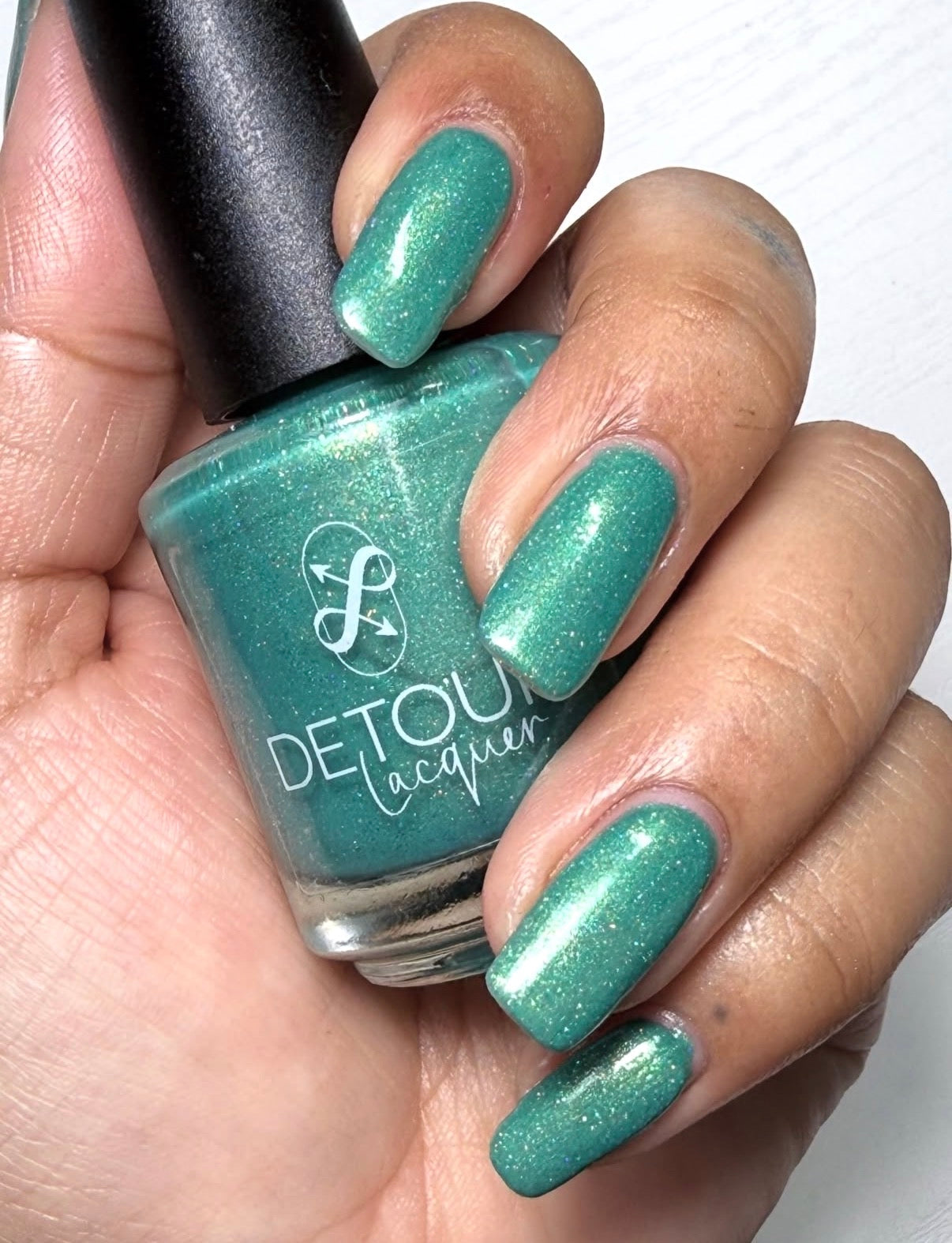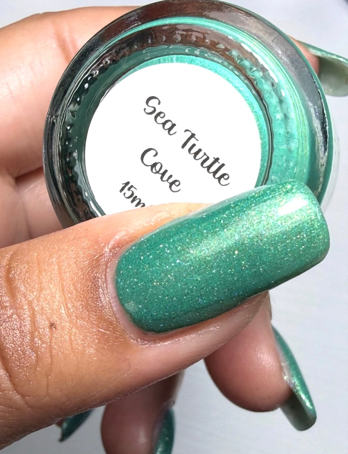 Sea Turtle Cove is reminiscent of a day at the beach, basking in the sun as the salty air tickles your senses. This deep seafoam green polish is packed with holo and a yearning for tranquility.