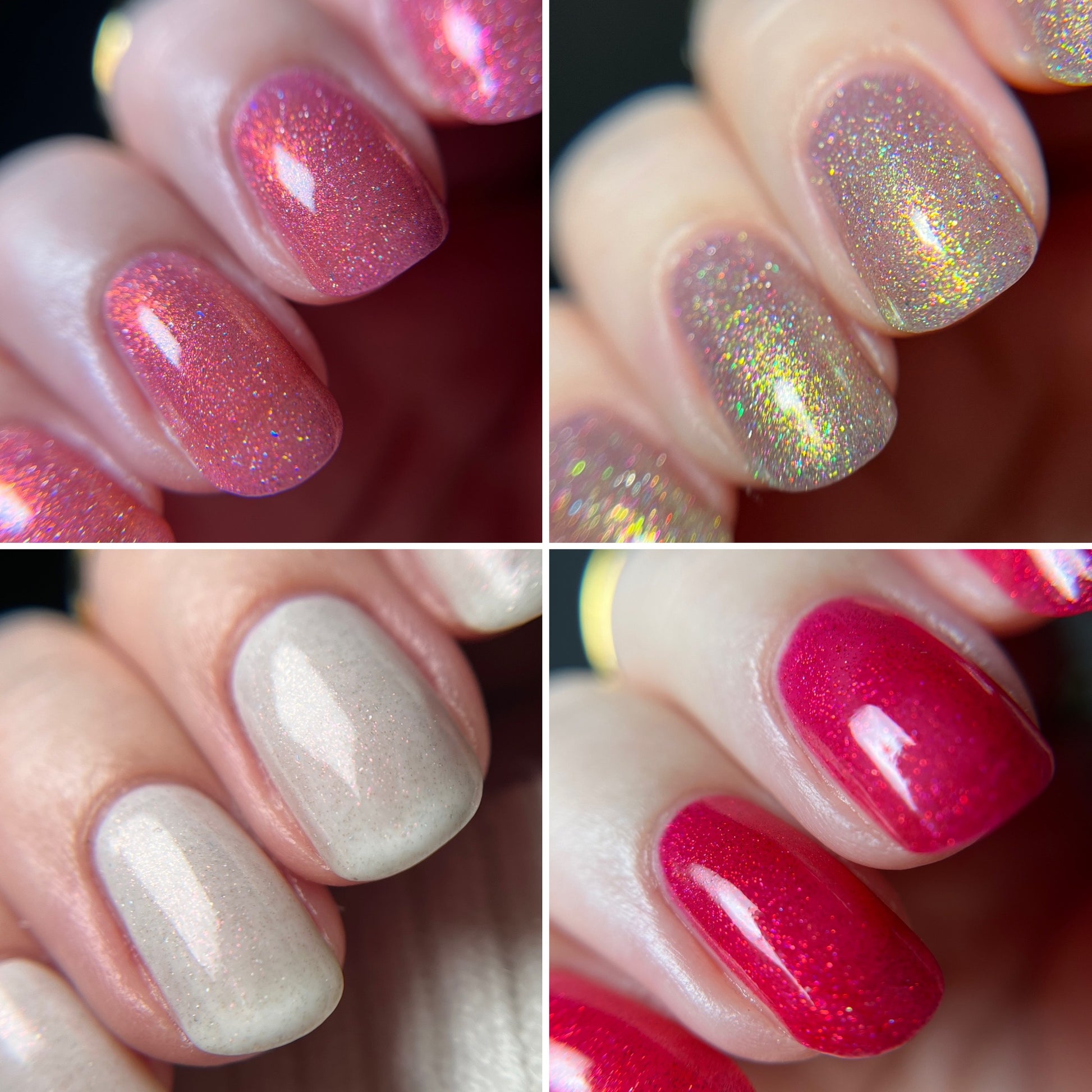 Our swatches are meant to give a general feel for each shade. We do our best to show accurate swatches on a range of skin tones, but screens can display colors differently. Since our polishes are handmade in small batches, small variations between batches are normal. Because of this, the polish you receive may look a bit different on you than it does in online swatches.