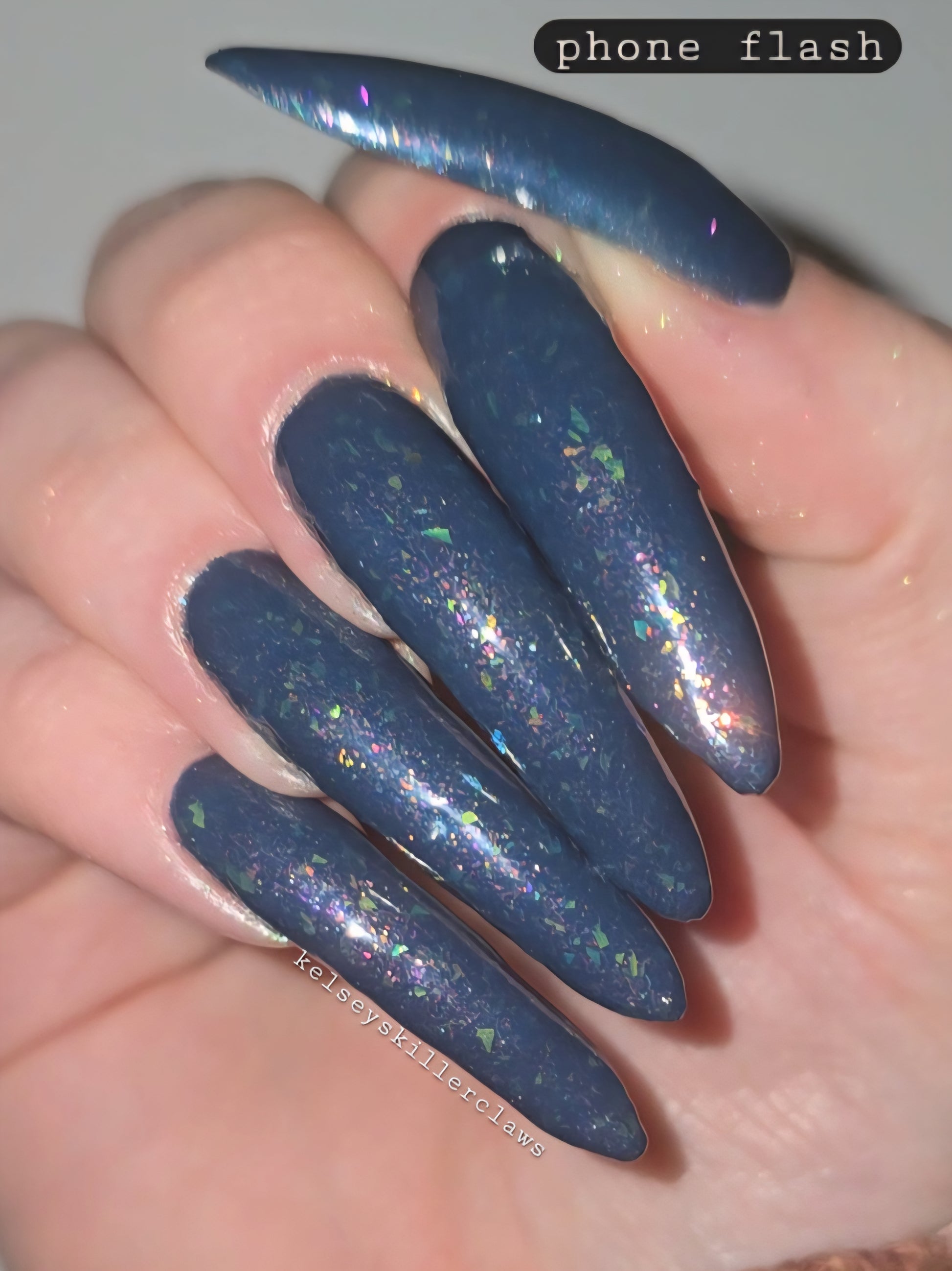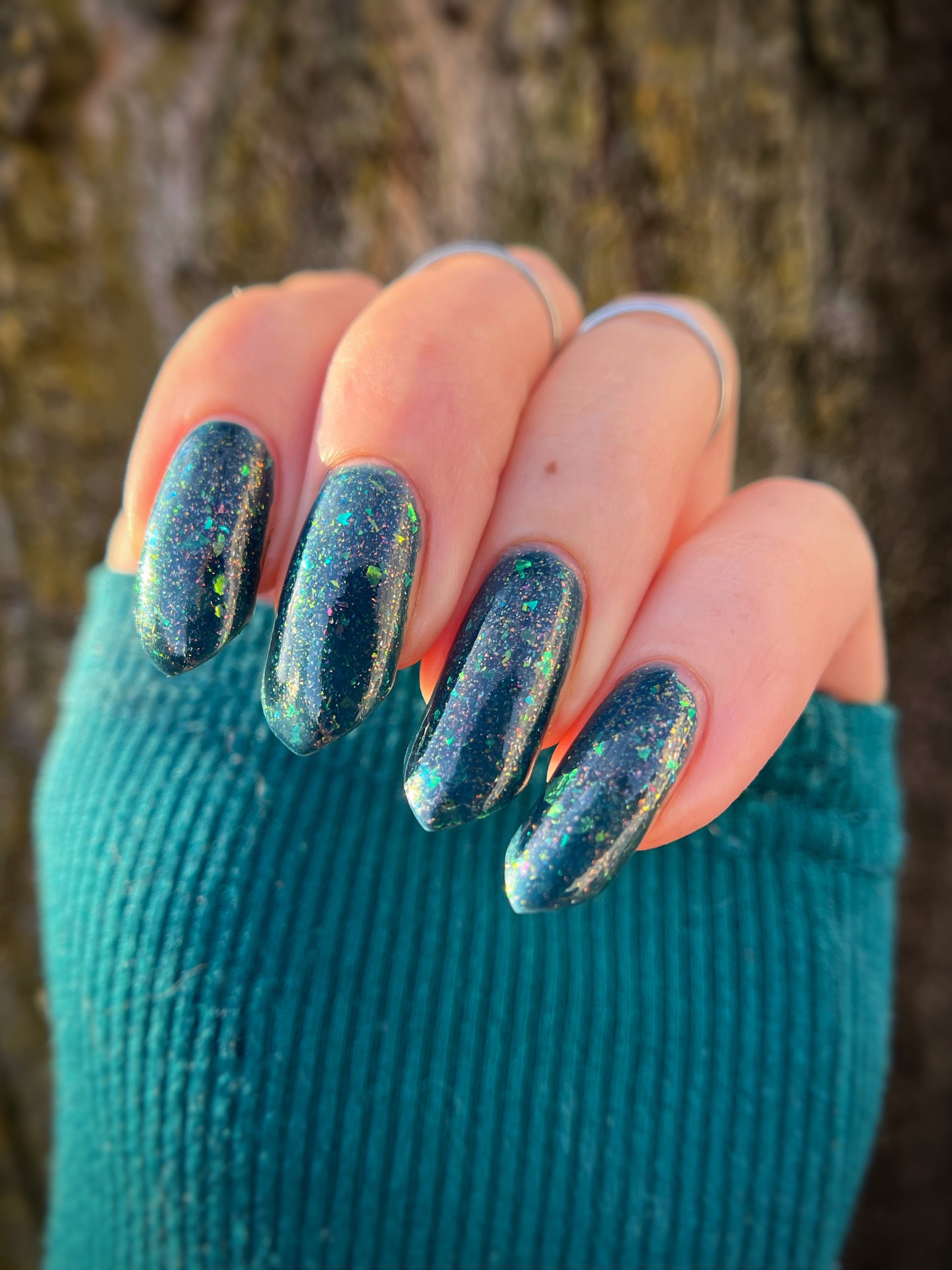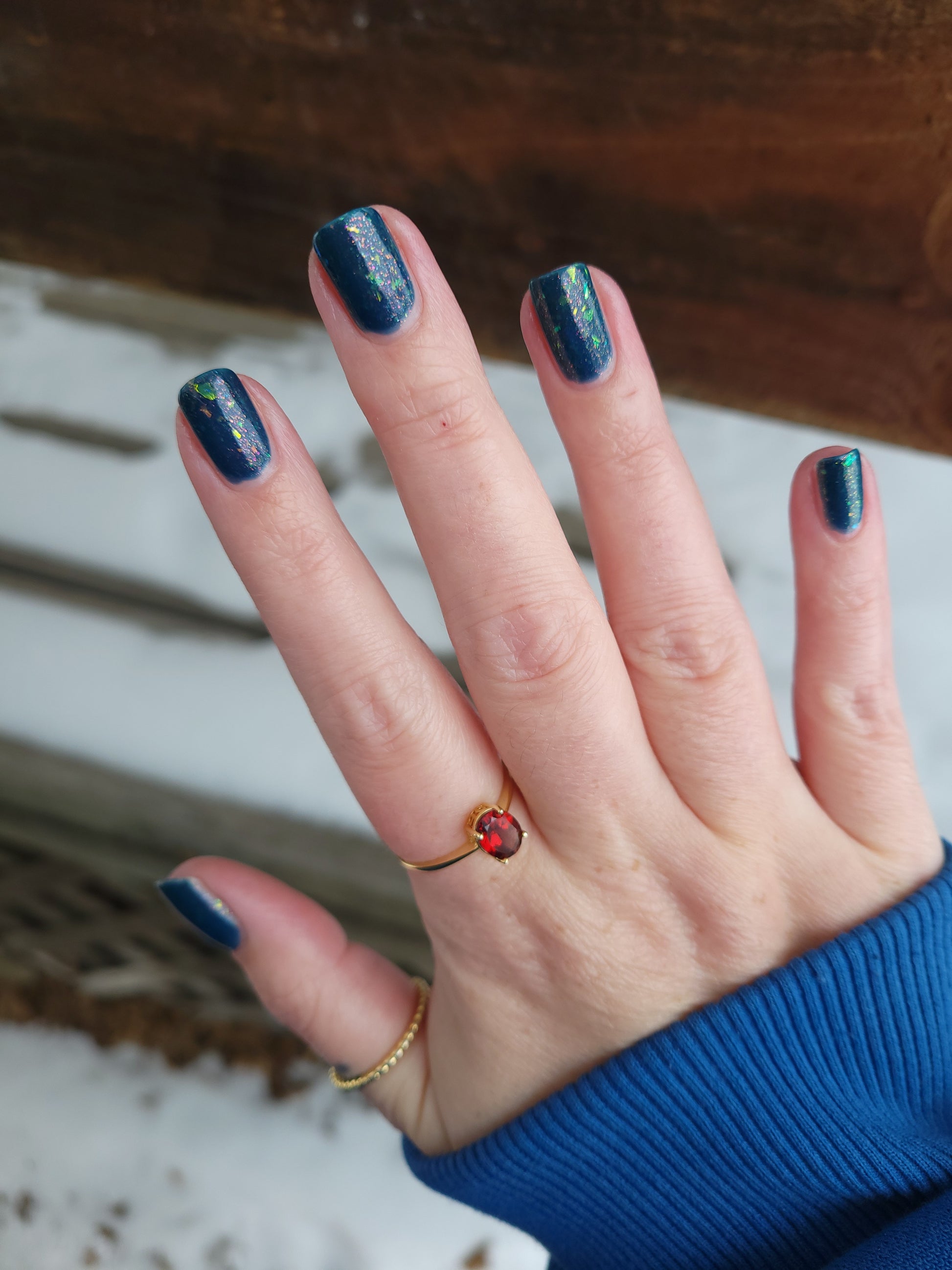 Wishing Star is magic in a bottle. This azure blue polish has iridescent flakes and an orange aurora shimmer. It's like wearing glistening sea glass on your fingertips (or toes!).